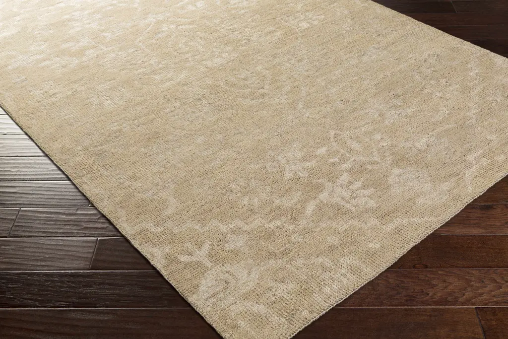 Collection: Friedensburg Colors: Cream, Tan Construction: Hand Knotted Material: 40% Viscose,60% NZ Wool Pile: Low Pile Pile Height: 0.08" Styles: Traditional Made In: India Thickness: 0.2" Price Range: $$$$$ (Affordable)