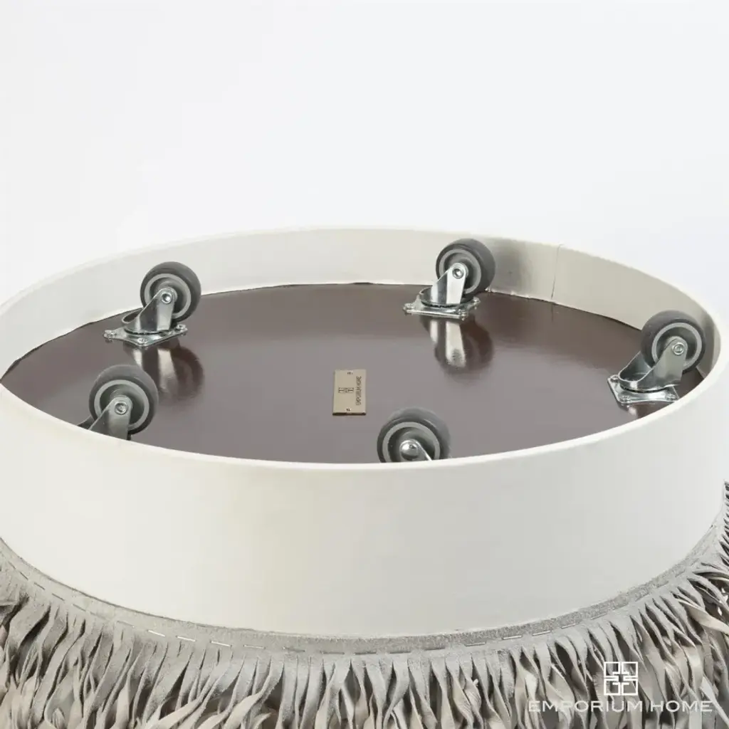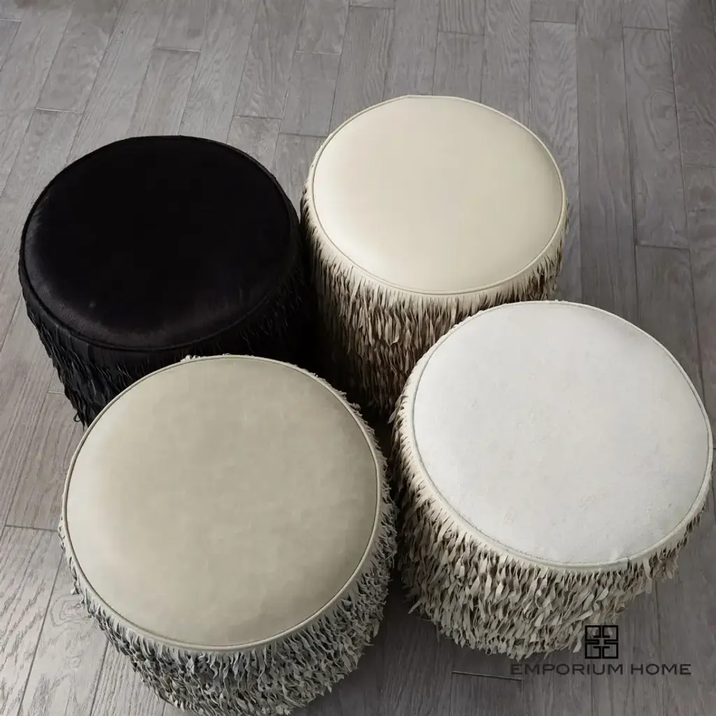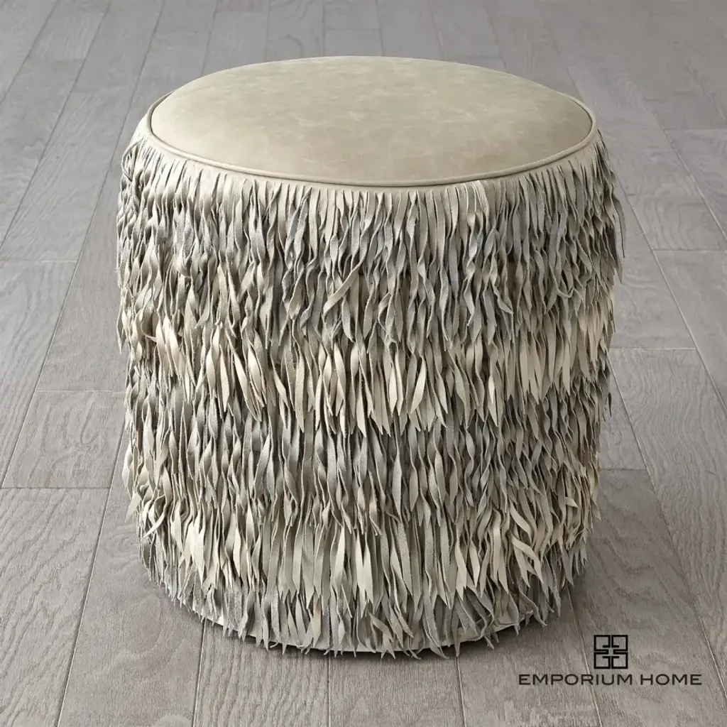 Our Fringe Ottoman features full leather upholstery, unexpected leather fringe, and hidden casters. It's a stylish and fun addition to any space and adds extra seating or a place to prop your feet up in an instant. From a fashion forward perspective, Global Views offers accessories, furniture, statement lighting, and an assortment of rugs and mirrors to add beauty and joy to your home.