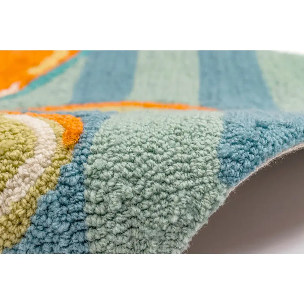 This ocean inspired mat with richly blended colors and playful novelty design will delight beach lovers everywhere. Hand hooked of weather-resistant fiber, this collection is a blend of comfort, softness and durability. Frontporch is remarkably easy to clean and treated for added fade resistance. Limiting exposure to rain, moisture and direct sun will prolong mat life.