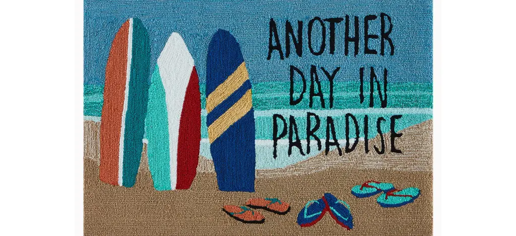 This ocean inspired mat with richly blended colors and playful novelty design will delight beach lovers everywhere. Hand hooked of weather-resistant fiber, this collection is a blend of comfort, softness and durability. Frontporch is remarkably easy to clean and treated for added fade resistance. Limiting exposure to rain, moisture and direct sun will prolong mat life.