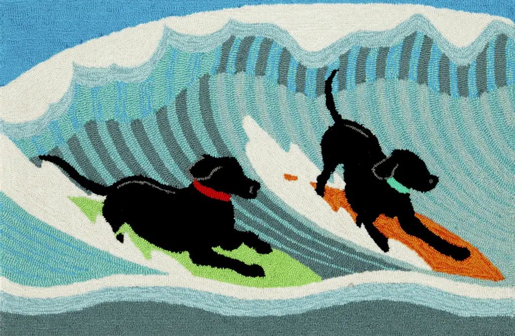 Frontporch Surfing Dogs Indoor/outdoor Area Rug, Ocean, 2'6x4'