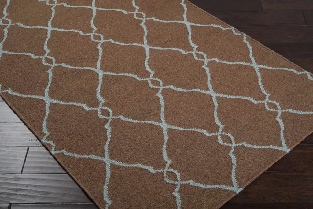 Collection: Frost Colors: Medium Brown, Medium Gray Construction: Hand Woven Material: 100% Wool Pile: No Pile Styles: Transitional Made In: India Thickness: 0.16" Price Range: $$$$$ (Most Affordable)