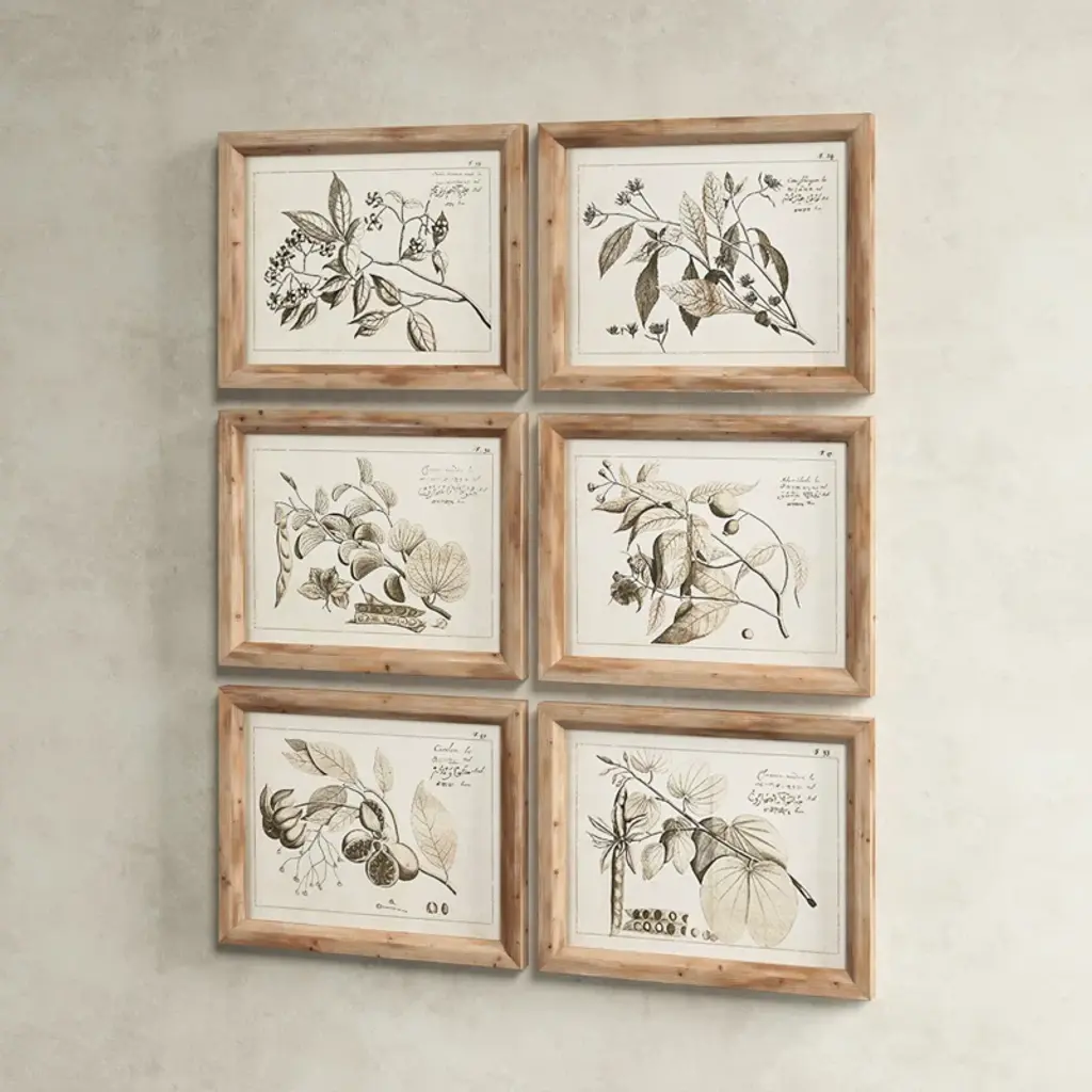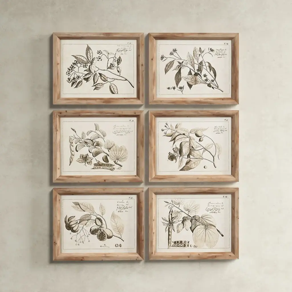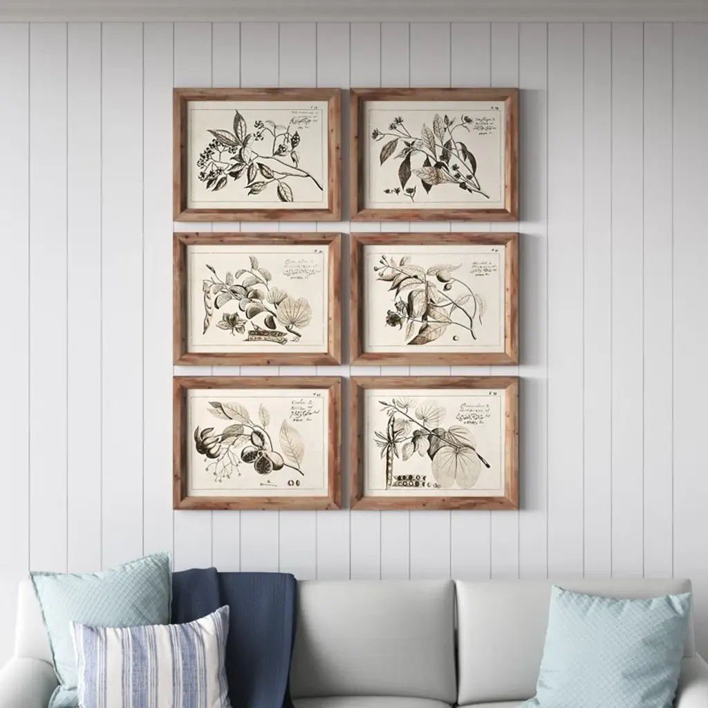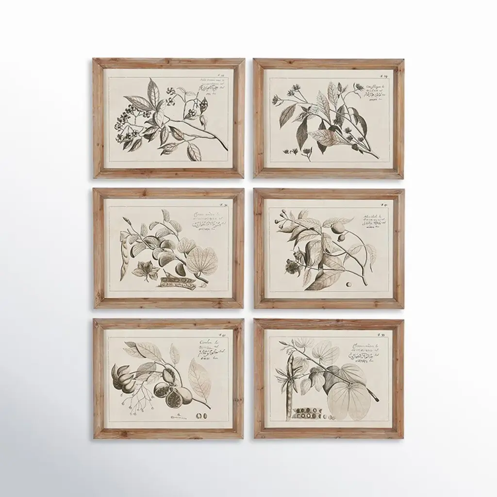This 6-piece graphic art print set is inspired by botanical illustrations found in vintage textbooks at your favorite antique shop. Right at home in any aesthetic, each piece depicts a different fruit-nearing branch against a white background. We love this wall art set's neutral colors and brown wooden frame, which look great against a white shiplap or exposed brick wall. Hang them together above the sofa in your traditional farmhouse cottage living room and layer in a coordinating jute rug nearby to tie it all together.
