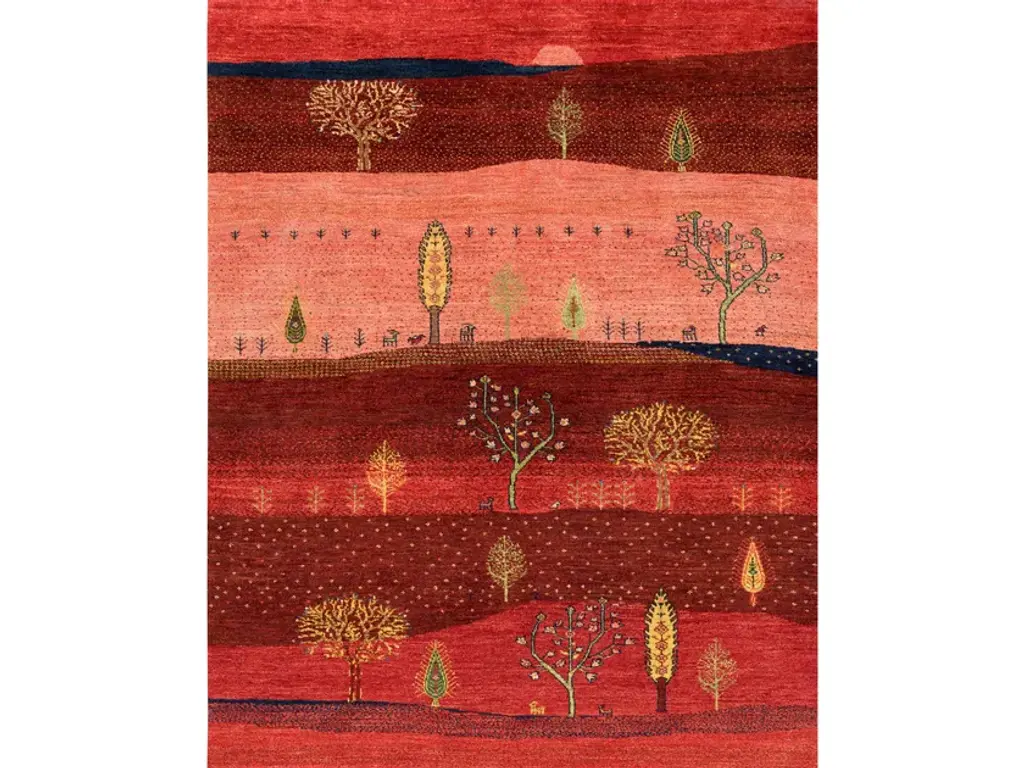 Full Moon Glow over Reedlands is a rectangular wool rug.Super Fine GabbehZollanvari Studio’s latest collection takes on a new landscape… that of shorelines and the flora that border them. The colours here are wram reds and oranges highlighted with bands of light… cream (undyed wool) defining the points of land that meet the water’s edge and the light of the sky.