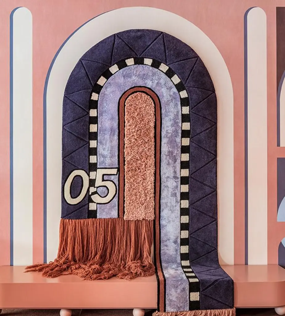 The full track tapestry rug draws inspiration from the tracks run by athletes in the ancient Olympic Games. Dusky neutrals and geometric patterns make up this tapestry rug with a neo-Deco vibe. This rug is hand-tufted in India, made with wool, silk, and shag. Each piece is an imaginative take on the tracks of ancient arenas, serving as an artwork that can be hung as a tapestry as well.Retreat to your very own 'Altis' with Altis Ornamentum by MONIOMI, a specialized collection of custom furniture and accessories drawing on the renowned sports arena aesthetics of ancient times. The Altis was a sacred space utilized by athletes during the Olympic games, harboring the temples of Zeus and Hera. Building on this vision with a modern twist, ultimate luxury is melded with clean lines and geometric shapes in our design of lush tapestry rugs, wall coverings, unique furnishings, and curated collectibles.