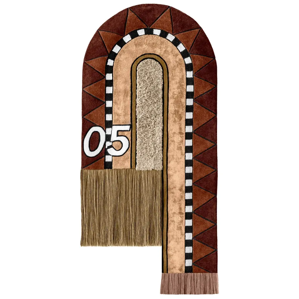 The full track tapestry rug draws inspiration from the tracks run by athletes in the ancient Olympic Games. Dusky neutrals and geometric patterns make up this tapestry rug with a neo-Deco vibe. This rug is hand-tufted in India, made with wool, silk, and shag. Each piece is an imaginative take on the tracks of ancient arenas, serving as an artwork that can be hung as a tapestry as well.Retreat to your very own 'Altis' with Altis Ornamentum by MONIOMI, a specialized collection of custom furniture and accessories drawing on the renowned sports arena aesthetics of ancient times. The Altis was a sacred space utilized by athletes during the Olympic games, harboring the temples of Zeus and Hera. Building on this vision with a modern twist, ultimate luxury is melded with clean lines and geometric shapes in our design of lush tapestry rugs, wall coverings, unique furnishings, and curated collectibles.