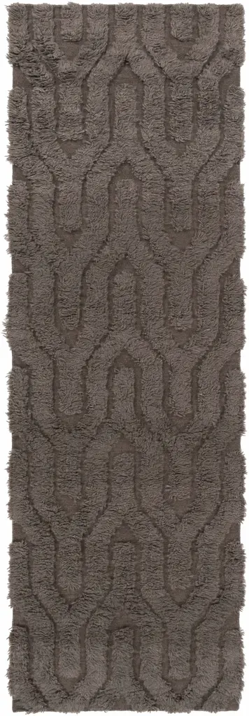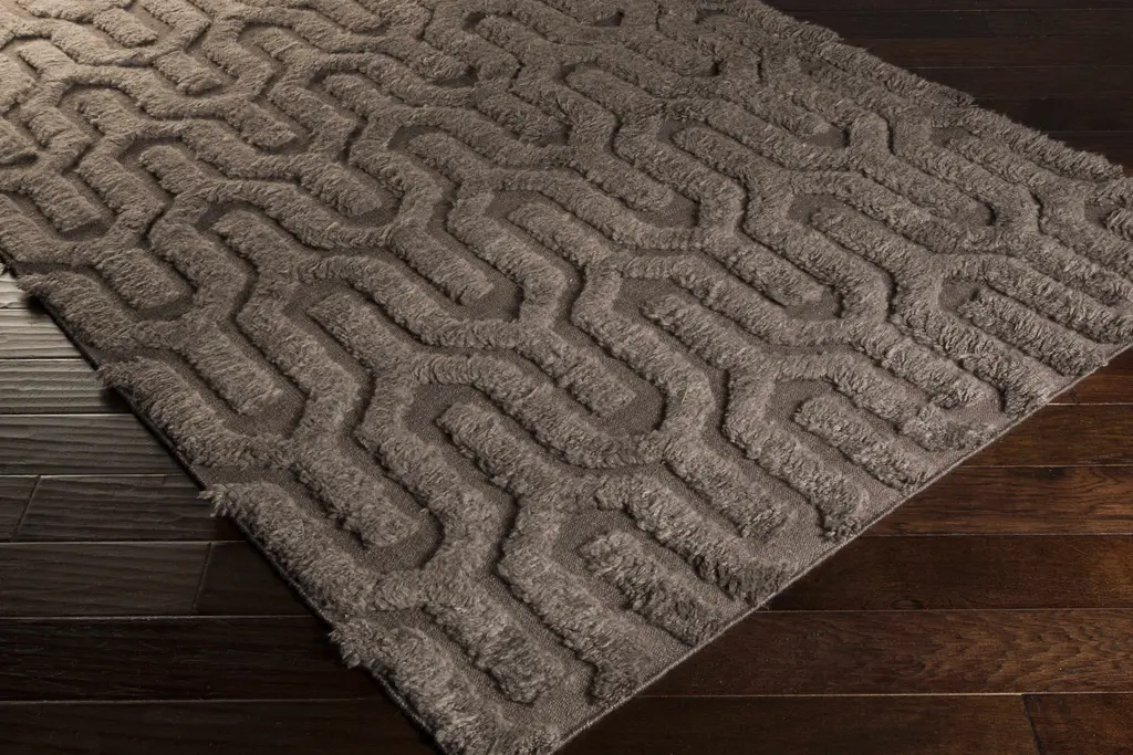 Collection: Funkstown Colors: Charcoal Construction: Hand Woven Material: 100% Wool Pile: Plush Pile Pile Height: 1.3" Styles: Natural Fibers Made In: India Thickness: 1.3" Price Range: $$$$$ (Affordable)
