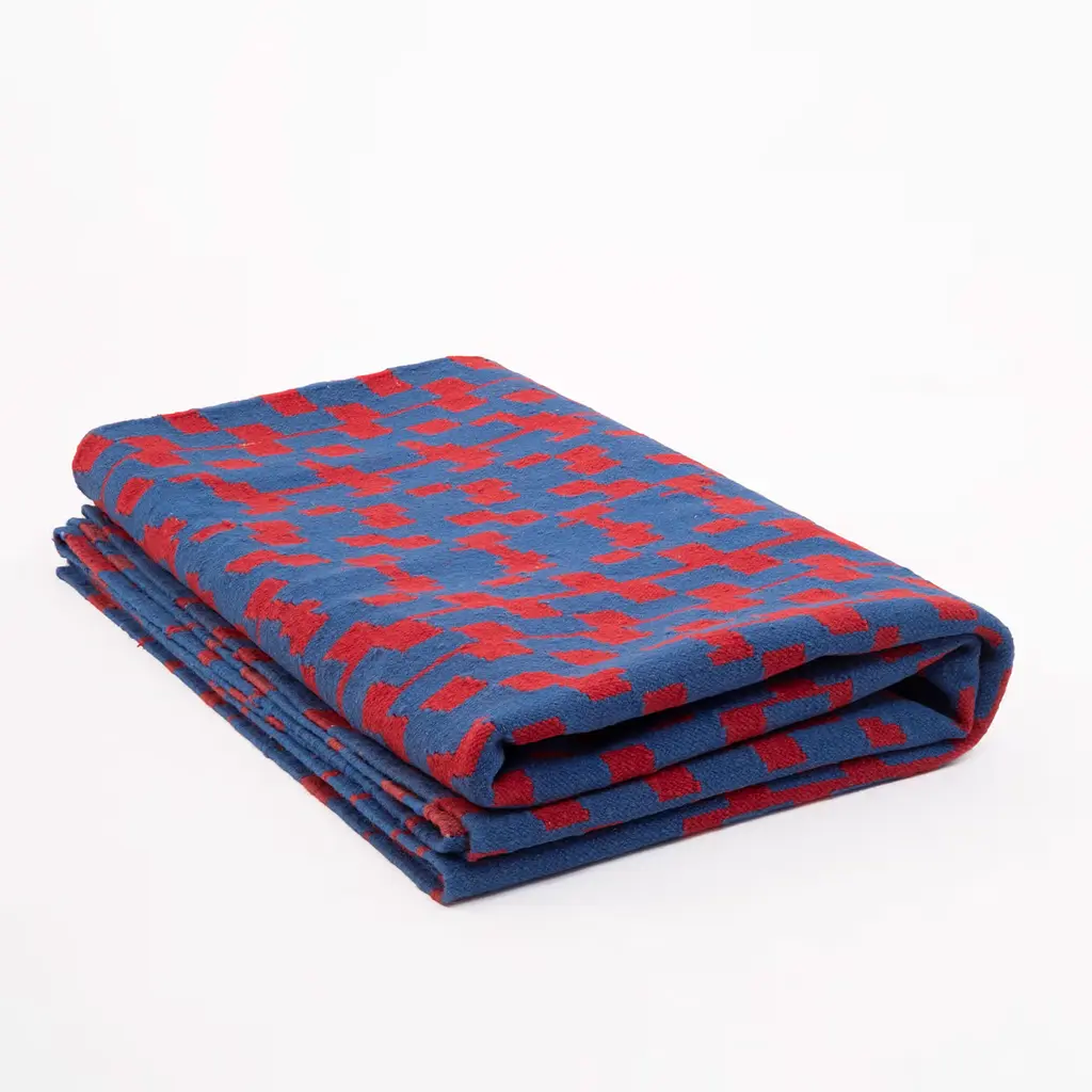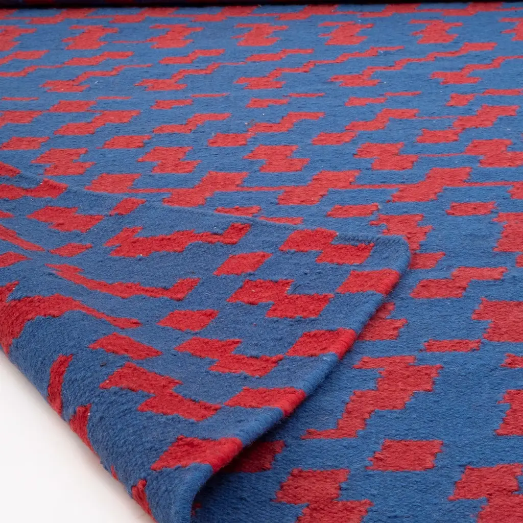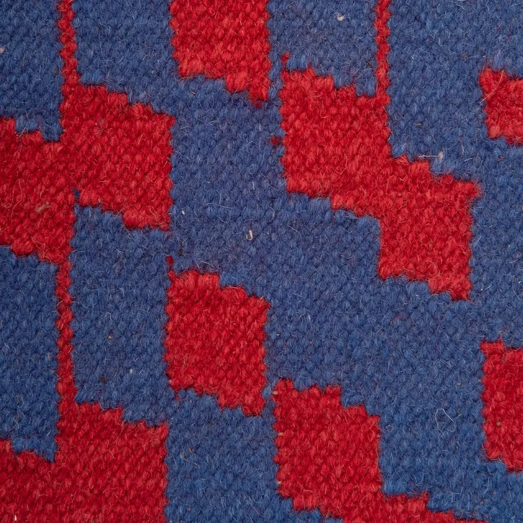 This work of design is part of the Fuoritempo collection which is a collection inspierd by musical rythms. The Fuoritempo Carpet presents an elegant combination of the colors red and blue. The lightness of a traditional Kilim s combined with the strength of contemporary visual design.
