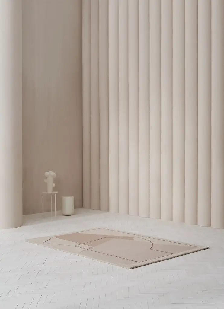 A minimalist pattern with well considered graphics, the Furbo Rug (2018) is hand-tufted by Linie Design's artisan weavers using an ancient technique, that creates a characteristic appearance and feels luxurious underfoot. Its understated and elegant color contrast is suitable for a variety of interiors. Designed by Urd Moll Gundermann and produced in cooperation with Care & Fair, an organization that fights illegal child labor and works to improve the living conditions of carpet knotters and their families. Made in India.