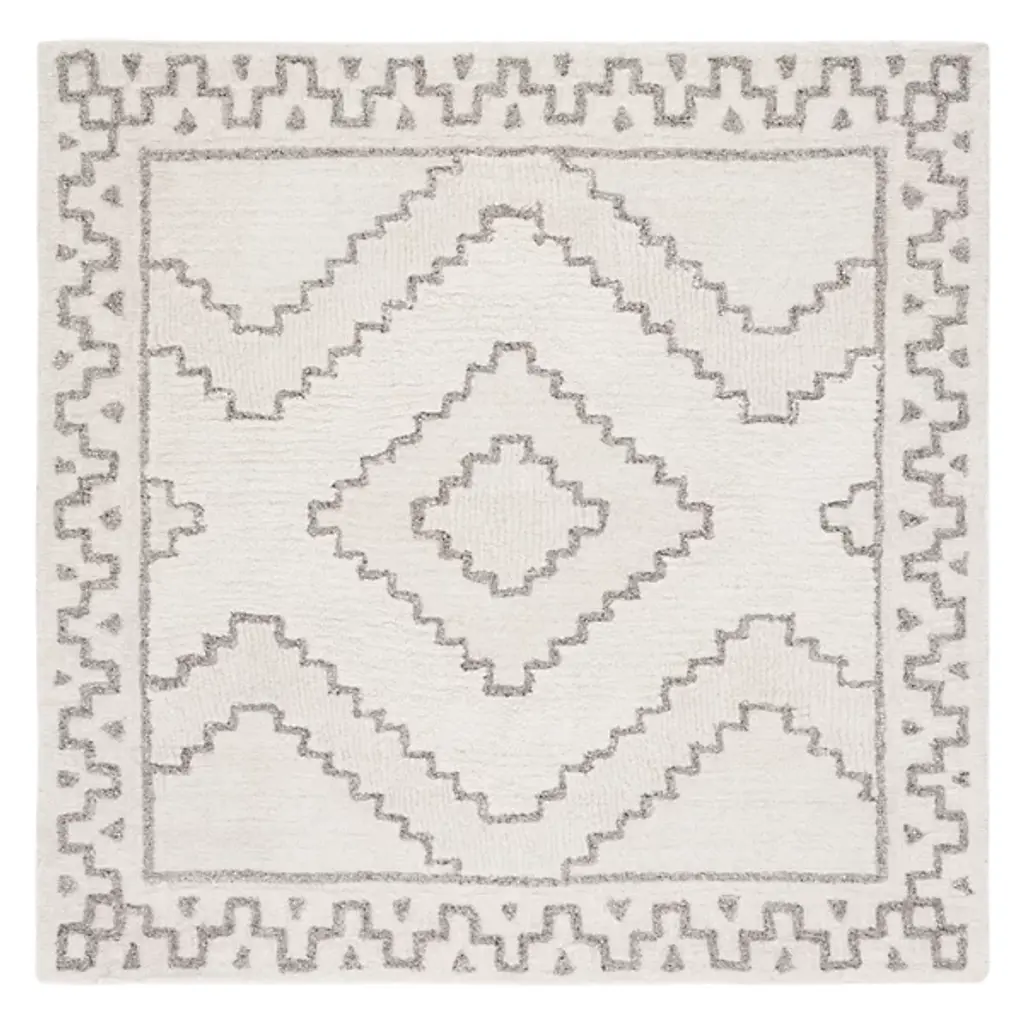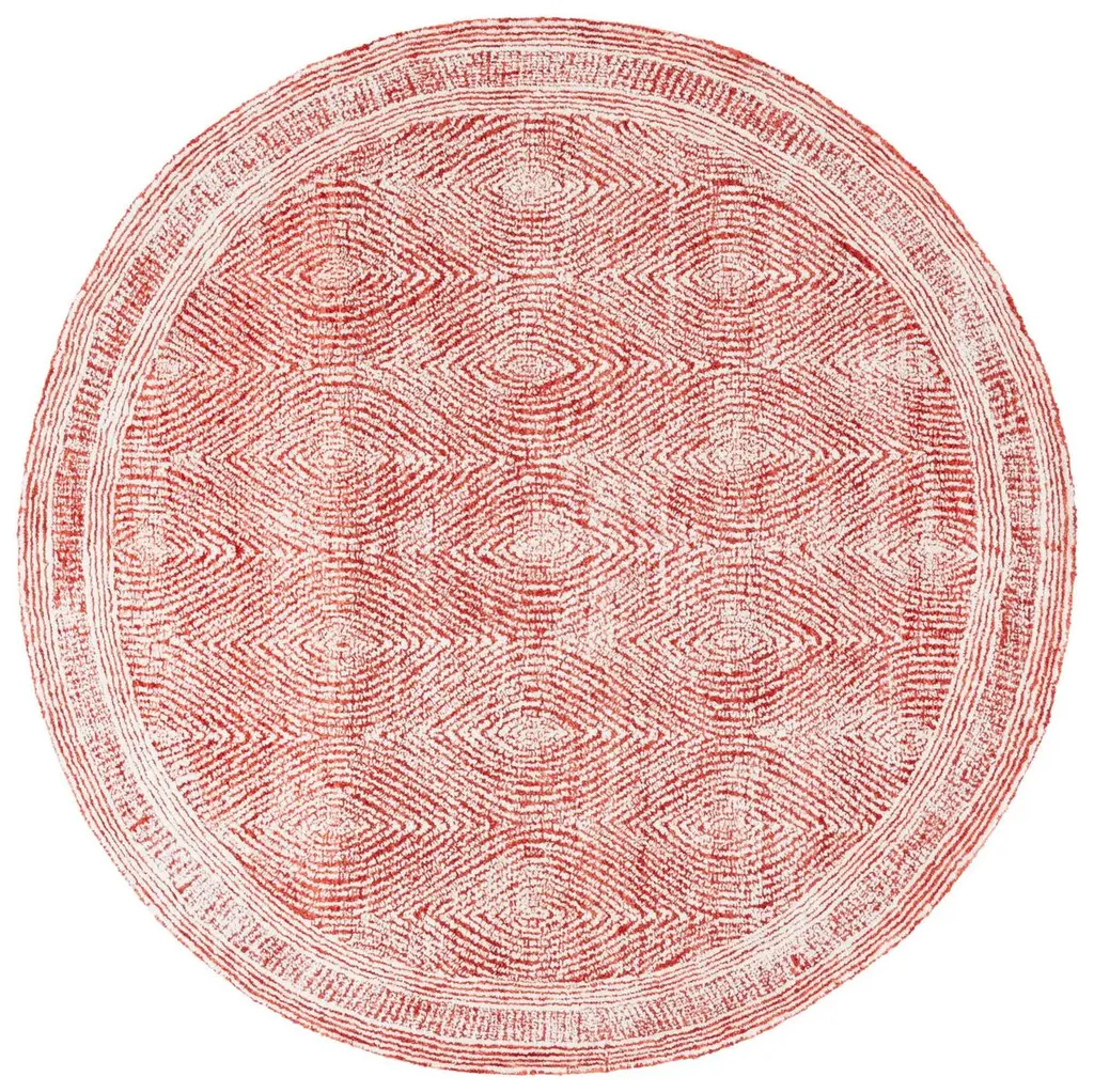The Fydor Round Rug from Alder & Ore offers a memorable blend of bohemian charm and geometric elegance. Hand-tufted in India from a luxurious wool, polyester, and cotton blend, this round rug shows off a subtle diamond motif framed by graceful dark lines on a soft, pale background. Its intricate design and artisanal craftsmanship bring a sense of refined texture and artistic character to any space.