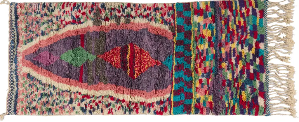Our Moroccan pieces are each one-of-a-kind. Much of our collection was woven between 30 and 100 years ago, and curated by us. Other rugs in our collection are fresh off the loom and made with traditional techniques. Moroccan rugs don’t come with a key. As with any painting or poem, their motifs have many subjective interpretations. Originally made for personal use, these rugs took months to weave, documenting a shifting tide of events and emotions in the weaver’s life.