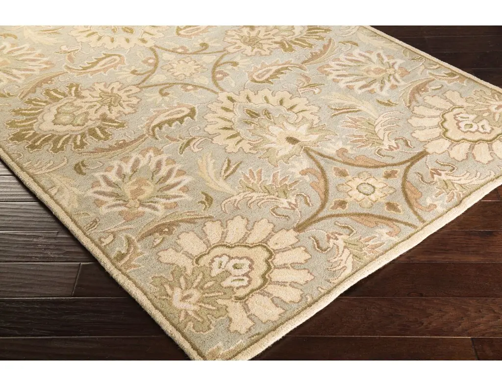 A modern color palette puts a fresh spin on this rug's traditionally inspired design. Hand-tufted of wool in a 5/8" pile, this rug will keep your space grounded in style.