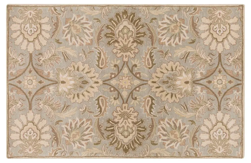 A modern color palette puts a fresh spin on this rug's traditionally inspired design. Hand-tufted of wool in a 5/8" pile, this rug will keep your space grounded in style.