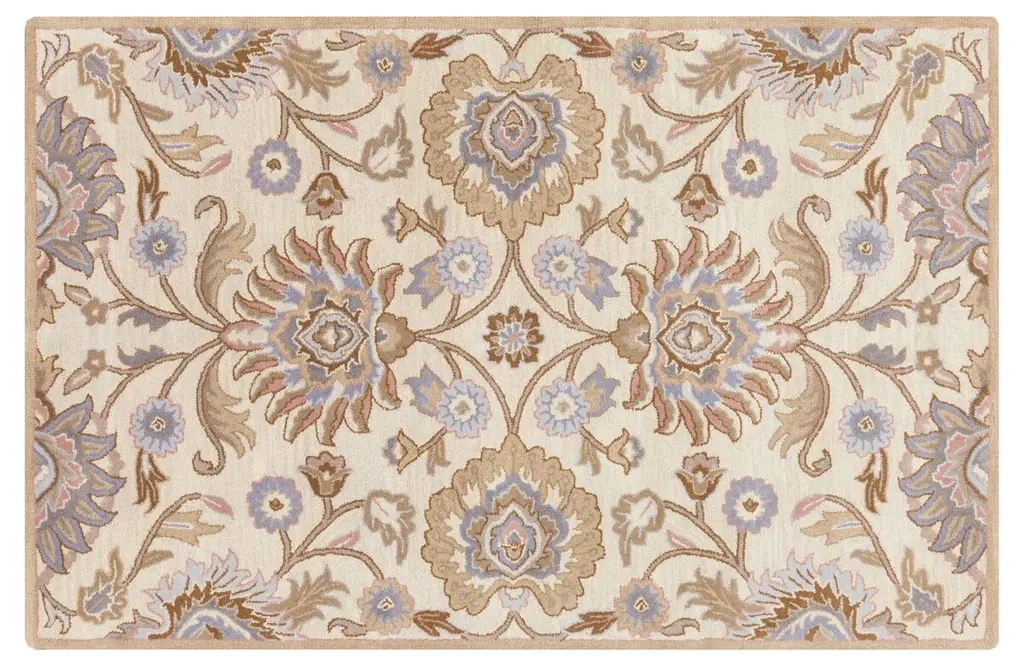 A brilliant patchwork of traditional motifs adds a contemporary twist to this elegantly hand-tufted wool rug. A rug pad is recommended to keep this securely in place.