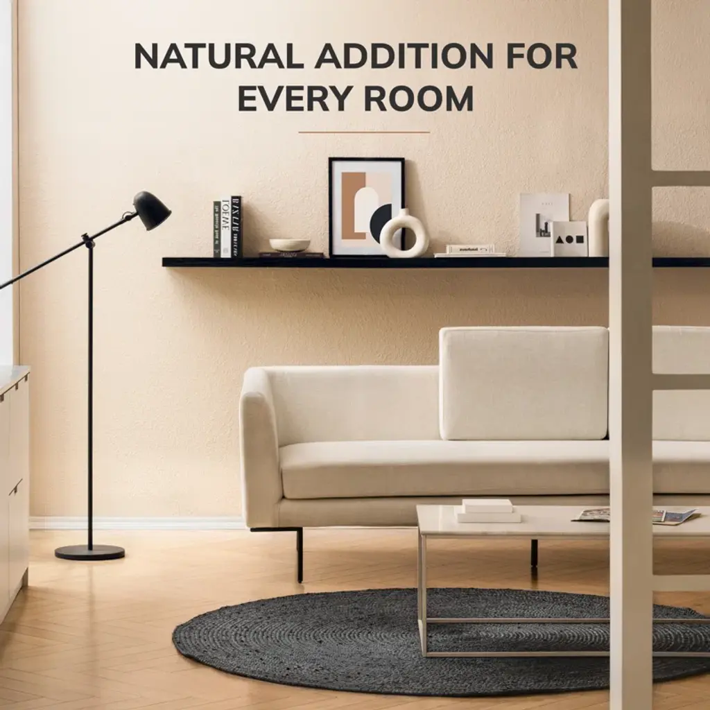 Elevate your home's ambiance with this hand-woven jute and sisal area rug, a natural choice for any indoor space. Its hand-braided texture brings warmth and a touch of rustic charm to your living room or bedroom. Plus, it's floor heating safe, so you can enjoy cozy toes on chilly mornings. This rug is stain-resistant, making it easy to maintain and keep looking fresh. Just remember, it doesn't come with a non-slip backing, so be sure to add a rug pad for extra grip and cushioning.