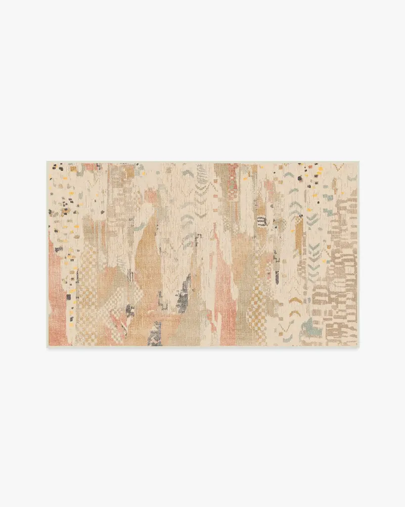 Indulge in the unique artistry of our Gaia Ivory Multicolor Rug. This bohemian pop design combines multiple unique global patterns, creating an intricate, ethereal, and distressed look. Warm corals, ochre yellows, and soft charcoals blend perfectly against a soft cream background. Water-resistant, stain-resistant, and machine-washable. Rug colors may vary slightly according to your device and the lighting in your space.