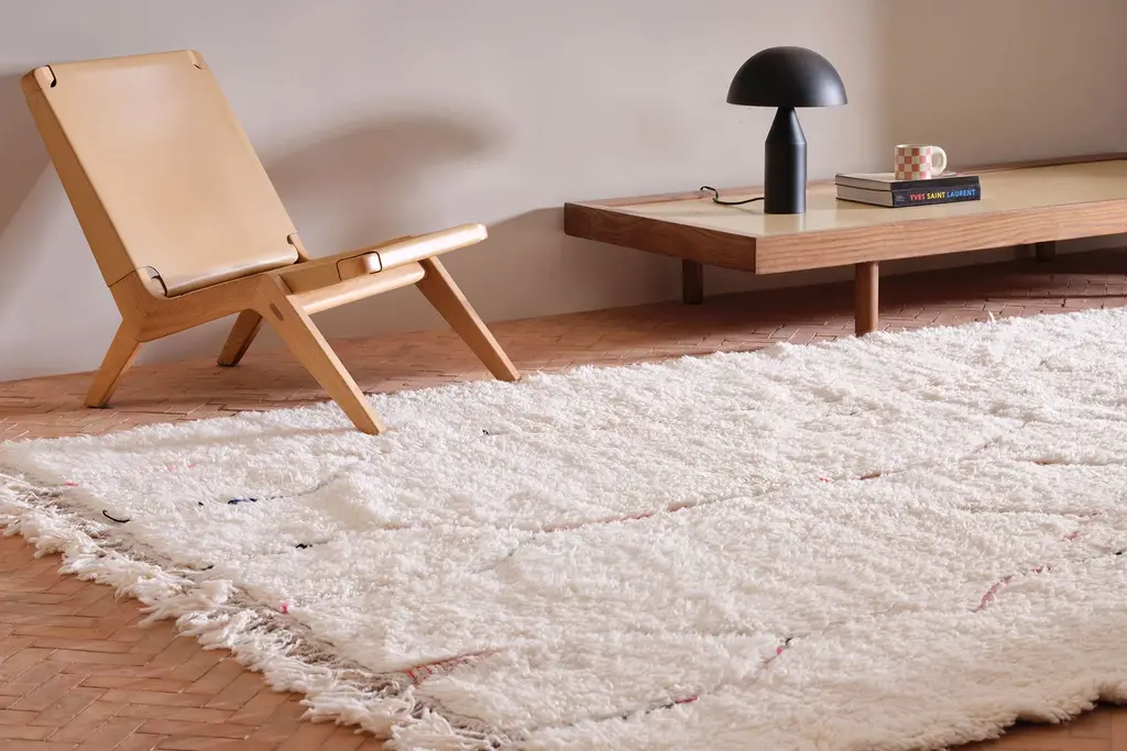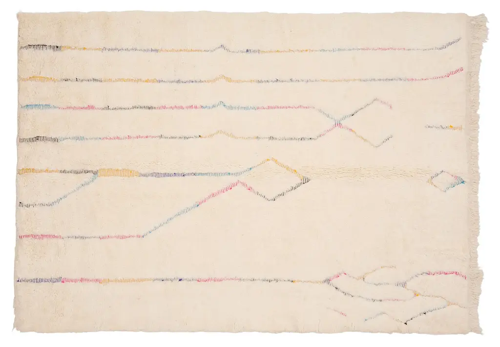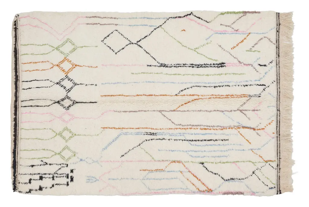 Our Moroccan pieces are each one-of-a-kind. Much of our collection was woven between 30 and 100 years ago, and curated by us. Other rugs in our collection are fresh off the loom and made with traditional techniques. Moroccan rugs don’t come with a key. As with any painting or poem, their motifs have many subjective interpretations. Originally made for personal use, these rugs took months to weave, documenting a shifting tide of events and emotions in the weaver’s life.