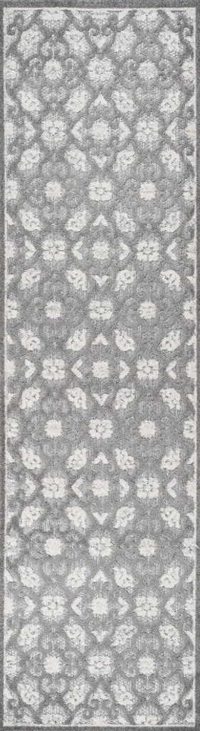 Inspired by antique Mediterranean tile patterns, this indoor-outdoor rug adds classic style to a kitchen, living room, bedroom or dining room. The all-over design is an easy maintenance solution for homes with kids and pets. Outdoors, this trellis patterned rug adds well-traveled chic to a porch or patio.Features:• Power loomed with a high and low 0.2" pile that''s soft and durable• Woven in shades of gray on a light gray ground• Made from easy-care polypropylene - just sweep, vacuum or hose down with mild soap and water• 100% Polypropylene• No backing, use of rug pad is recommended (sold separately)• Power Loomed in Turkey• Actual Dimension: 2 ft. 3 in. x 10 ft.• Color: Light Gray/Ivory• Thickness measures: 0.2 in.• Available in multiple sizes and/or colorsRug Care:• Vacuum regularly and spot clean as needed; avoid direct and continuous exposure to sunlight; use brushless vacuum; remove spills immediately; if liquid, blot with clean, undyed cloth by pressing firmly around the spill to absorb as much as possible; for hard to remove stains, professional rug cleaning is recommended; store in a dry, well ventilated area and rotate for consistent wear• Packing and shipping may cause temporary creases in rugs, which will flatten out after a week on the floor; to expedite the process, try back-rolling your rug before laying it down, and then allow ample time for the remaining creases to relax• Please Note: Due to differences in monitors, some rug colors may vary slightly. Lengths and widths may vary from the published dimensions. Patterns may vary slightly according to shape and size selected.About us:Style your floors with JONATHAN Y. By combining fine craftsmanship and design, this New York creative studio is bringing fashion to your floors. The collection mixes sustainable organic materials, vibrant colors and trend worthy styles to create JONATHAN Y''s distinctive catalog of rugs.