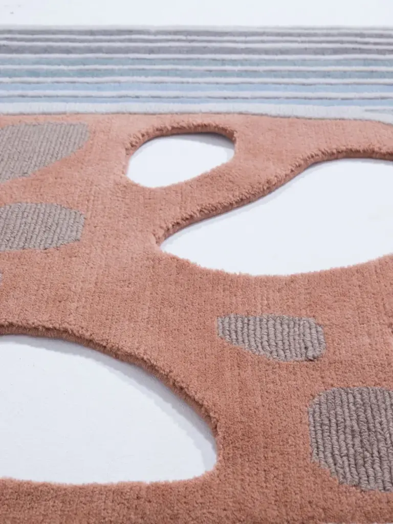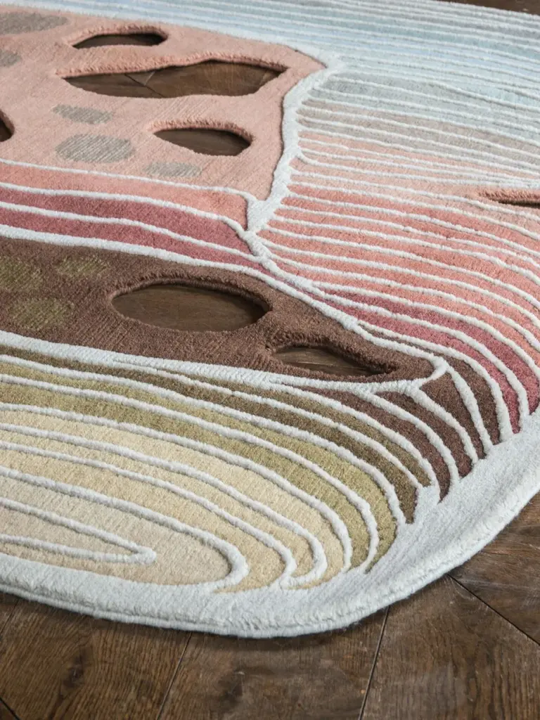 Material: WoolPile Height: 6 - 8mmTechnique: Hand-knottedCustom sizes and colors on requestInspired by the beauty and philosophy of the natural electromagnetic spectrum as a starting point for each design, the Tapis Rouge Studio team looked to the four frequencies of light radiation and their respective wavelengths and photon energies, translating them into a collection of 14 distinctive designs that blend fluid forms with striking color gradients. Rugs in the Laser hand-knotted series are characterized by innovative, dynamic shapes and a rounded cut of the long pile, which range from 2 to 16 mm, achieved in the manual carving stage: elements that result from deliberate formal and technical experimentation and research. Laser Mercury is 100% wool but can also be requested to be combined with silk to give the background light accents.