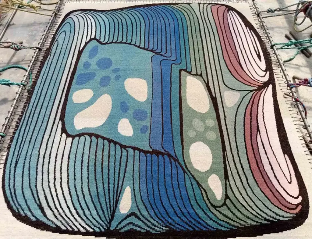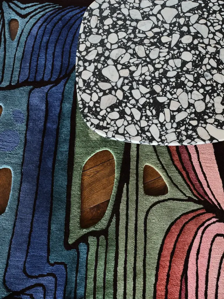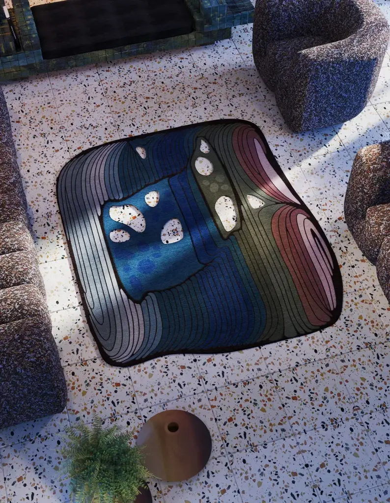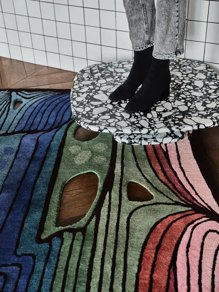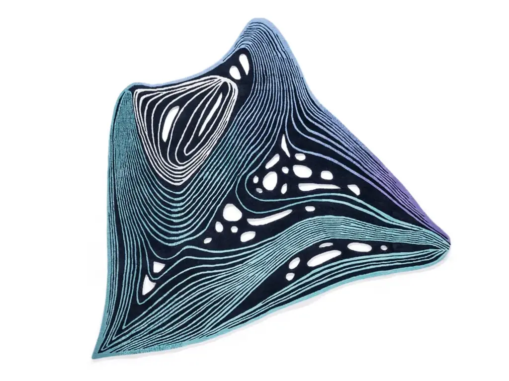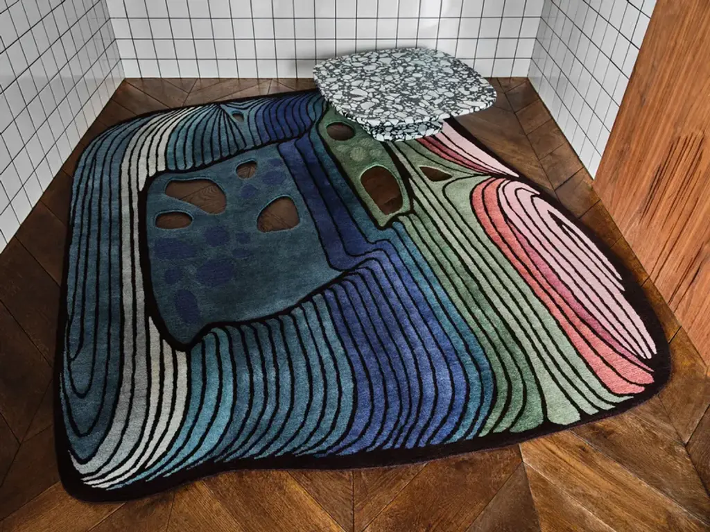 Material: WoolPile Height: 6 - 8mmTechnique: Hand-knottedCustom sizes and colors on requestInspired by the beauty and philosophy of the natural electromagnetic spectrum as a starting point for each design, the Tapis Rouge Studio team looked to the four frequencies of light radiation and their respective wavelengths and photon energies, translating them into a collection of 14 distinctive designs that blend fluid forms with striking color gradients. Rugs in the Laser hand-knotted series are characterized by innovative, dynamic shapes and a rounded cut of the long pile, which range from 2 to 16 mm, achieved in the manual carving stage: elements that result from deliberate formal and technical experimentation and research. Laser Mercury is 100% wool but can also be requested to be combined with silk to give the background light accents.