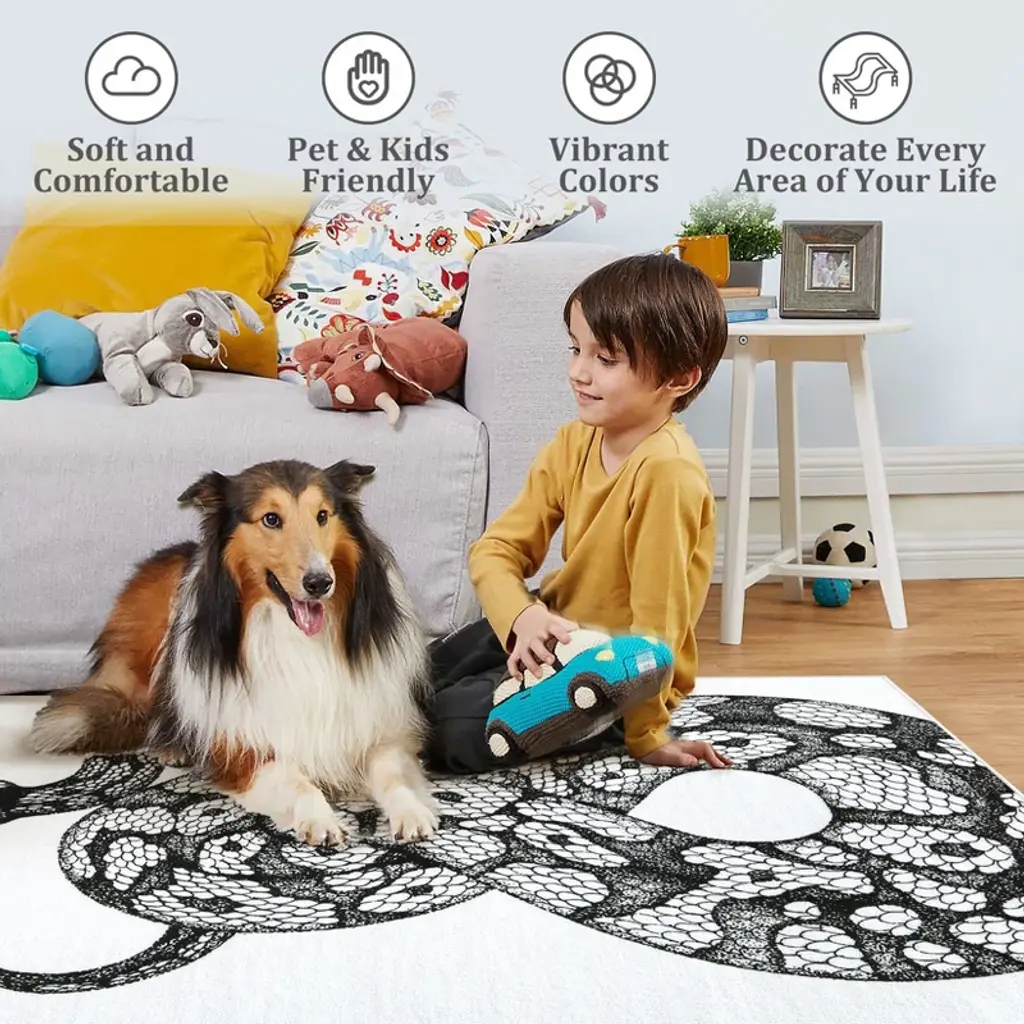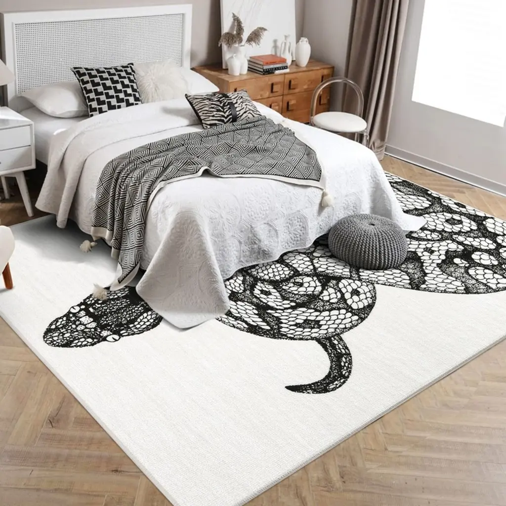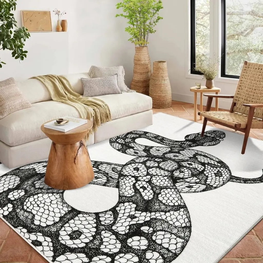 Gaomon Modern Snake Pattern Area Rug Washable Rug Low Pile Non-slip Backing Carpet, Black/white