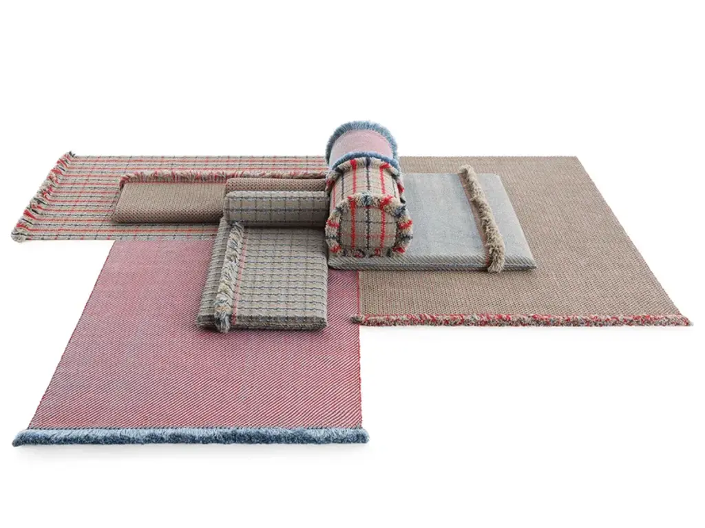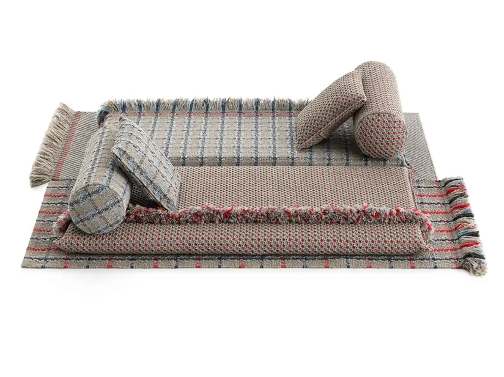 GARDEN LAYERS, GAN’S FIRST OUTDOOR SPACE design by PATRICIA URQUIOLA for GAN.There exist artists who know no boundaries and there are journeys that changeeverything.Patricia Urquiola travelled to India where she was captivated by the delicacy and harmony of the Mongol architecture she found there. Gardens, terraces and miniatures found their way into her restless imagination inspiring a new collection which from the very first spark of creativity she wanted to be for the outdoors.Hand in hand together with her GAN sets its sights on new horizons.GARDEN LAYERS, the first outdoor adventure under the framework of the GAN Spaces series is a collection made up of rugs, mats, roll pillows and cushions that can be arranged in different ways together, with infinite possibilities for outdoor living.The influence of the Orient in GARDEN LAYERS is evident in terms of the way it invites reclined relaxation on rugs and mats, supported on roll pillows and stuffed cushions. It can also be perceived in the fringes, the finishes and the geometry of its motifs.Urquiola once again showcases her masterly design skills. Her creativity in interpretingother worlds and transporting us to them through her exquisite language.The collection is available in three colour groups: terracotta, grey ad blue. Its inspireddesign is combined with high-tech materials and fillings: weather resistant yarns and foams that dry rapidly (dryfast) in order to provide the perfect outdoor behaviour.