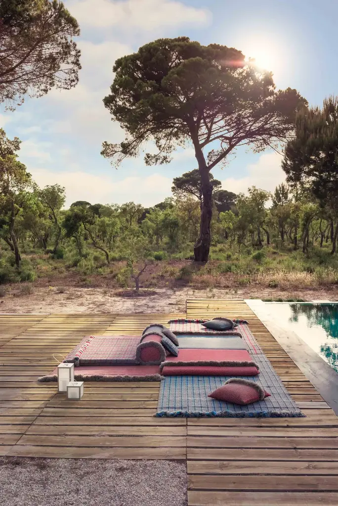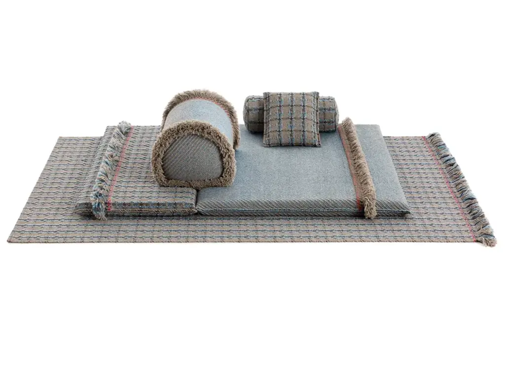 GARDEN LAYERS, GAN’S FIRST OUTDOOR SPACE design by PATRICIA URQUIOLA for GAN.There exist artists who know no boundaries and there are journeys that changeeverything.Patricia Urquiola travelled to India where she was captivated by the delicacy and harmony of the Mongol architecture she found there. Gardens, terraces and miniatures found their way into her restless imagination inspiring a new collection which from the very first spark of creativity she wanted to be for the outdoors.Hand in hand together with her GAN sets its sights on new horizons.GARDEN LAYERS, the first outdoor adventure under the framework of the GAN Spaces series is a collection made up of rugs, mats, roll pillows and cushions that can be arranged in different ways together, with infinite possibilities for outdoor living.The influence of the Orient in GARDEN LAYERS is evident in terms of the way it invites reclined relaxation on rugs and mats, supported on roll pillows and stuffed cushions. It can also be perceived in the fringes, the finishes and the geometry of its motifs.Urquiola once again showcases her masterly design skills. Her creativity in interpretingother worlds and transporting us to them through her exquisite language.The collection is available in three colour groups: terracotta, grey ad blue. Its inspireddesign is combined with high-tech materials and fillings: weather resistant yarns and foams that dry rapidly (dryfast) in order to provide the perfect outdoor behaviour.