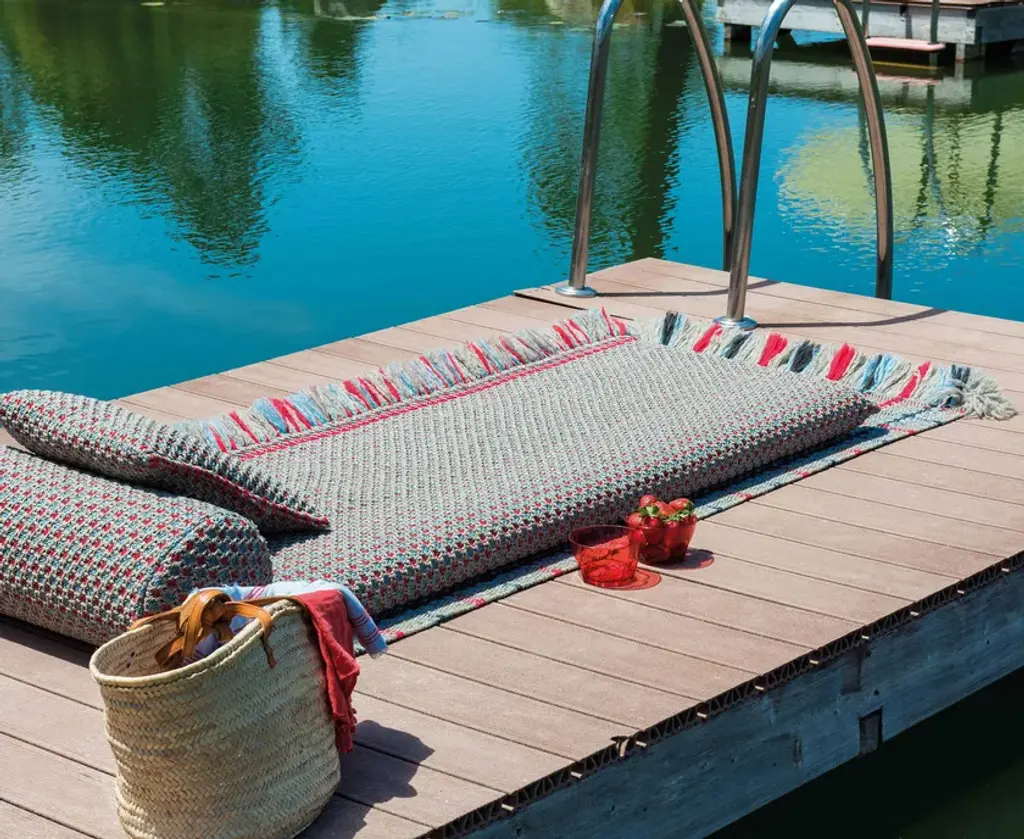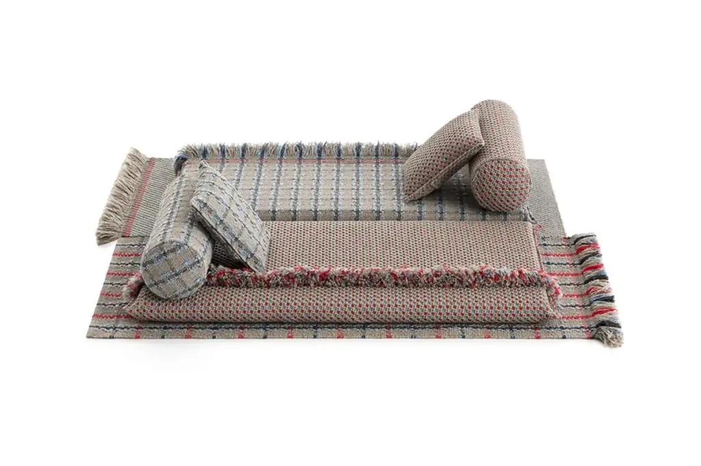GARDEN LAYERS, GAN’S FIRST OUTDOOR SPACE design by PATRICIA URQUIOLA for GAN.There exist artists who know no boundaries and there are journeys that changeeverything.Patricia Urquiola travelled to India where she was captivated by the delicacy and harmony of the Mongol architecture she found there. Gardens, terraces and miniatures found their way into her restless imagination inspiring a new collection which from the very first spark of creativity she wanted to be for the outdoors.Hand in hand together with her GAN sets its sights on new horizons.GARDEN LAYERS, the first outdoor adventure under the framework of the GAN Spaces series is a collection made up of rugs, mats, roll pillows and cushions that can be arranged in different ways together, with infinite possibilities for outdoor living.The influence of the Orient in GARDEN LAYERS is evident in terms of the way it invites reclined relaxation on rugs and mats, supported on roll pillows and stuffed cushions. It can also be perceived in the fringes, the finishes and the geometry of its motifs.Urquiola once again showcases her masterly design skills. Her creativity in interpretingother worlds and transporting us to them through her exquisite language.The collection is available in three colour groups: terracotta, grey ad blue. Its inspireddesign is combined with high-tech materials and fillings: weather resistant yarns and foams that dry rapidly (dryfast) in order to provide the perfect outdoor behaviour.