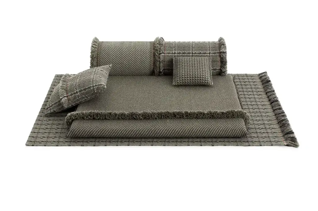 GARDEN LAYERS, GAN’S FIRST OUTDOOR SPACE design by PATRICIA URQUIOLA for GAN.There exist artists who know no boundaries and there are journeys that changeeverything.Patricia Urquiola travelled to India where she was captivated by the delicacy and harmony of the Mongol architecture she found there. Gardens, terraces and miniatures found their way into her restless imagination inspiring a new collection which from the very first spark of creativity she wanted to be for the outdoors.Hand in hand together with her GAN sets its sights on new horizons.GARDEN LAYERS, the first outdoor adventure under the framework of the GAN Spaces series is a collection made up of rugs, mats, roll pillows and cushions that can be arranged in different ways together, with infinite possibilities for outdoor living.The influence of the Orient in GARDEN LAYERS is evident in terms of the way it invites reclined relaxation on rugs and mats, supported on roll pillows and stuffed cushions. It can also be perceived in the fringes, the finishes and the geometry of its motifs.Urquiola once again showcases her masterly design skills. Her creativity in interpretingother worlds and transporting us to them through her exquisite language.The collection is available in three colour groups: terracotta, grey ad blue. Its inspireddesign is combined with high-tech materials and fillings: weather resistant yarns and foams that dry rapidly (dryfast) in order to provide the perfect outdoor behaviour.