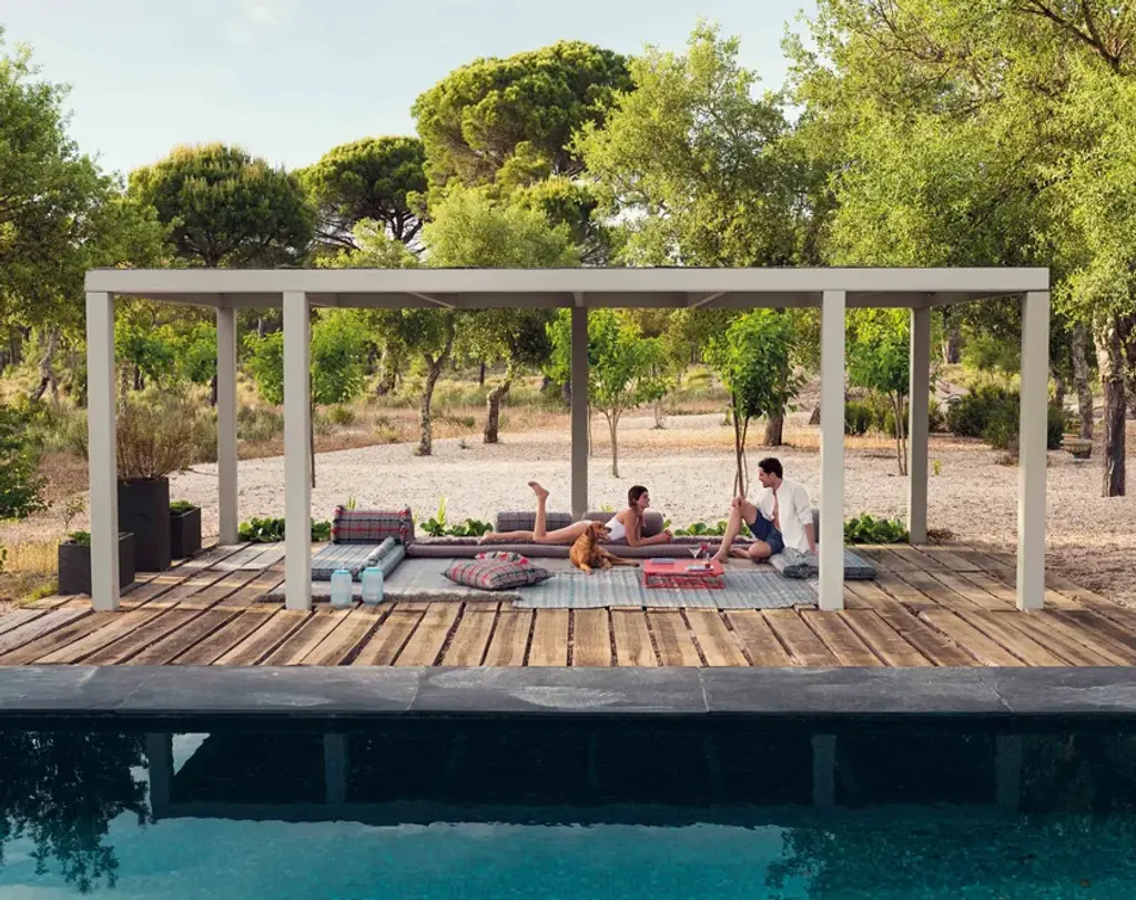 GARDEN LAYERS, GAN’S FIRST OUTDOOR SPACE design by PATRICIA URQUIOLA for GAN.There exist artists who know no boundaries and there are journeys that changeeverything.Patricia Urquiola travelled to India where she was captivated by the delicacy and harmony of the Mongol architecture she found there. Gardens, terraces and miniatures found their way into her restless imagination inspiring a new collection which from the very first spark of creativity she wanted to be for the outdoors.Hand in hand together with her GAN sets its sights on new horizons.GARDEN LAYERS, the first outdoor adventure under the framework of the GAN Spaces series is a collection made up of rugs, mats, roll pillows and cushions that can be arranged in different ways together, with infinite possibilities for outdoor living.The influence of the Orient in GARDEN LAYERS is evident in terms of the way it invites reclined relaxation on rugs and mats, supported on roll pillows and stuffed cushions. It can also be perceived in the fringes, the finishes and the geometry of its motifs.Urquiola once again showcases her masterly design skills. Her creativity in interpretingother worlds and transporting us to them through her exquisite language.The collection is available in three colour groups: terracotta, grey ad blue. Its inspireddesign is combined with high-tech materials and fillings: weather resistant yarns and foams that dry rapidly (dryfast) in order to provide the perfect outdoor behaviour.