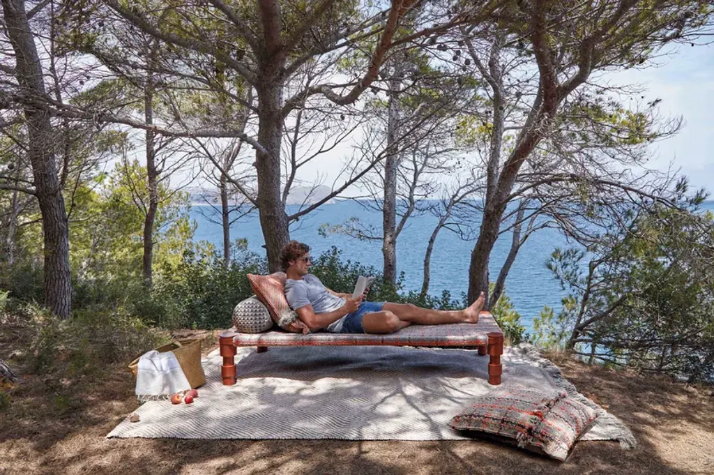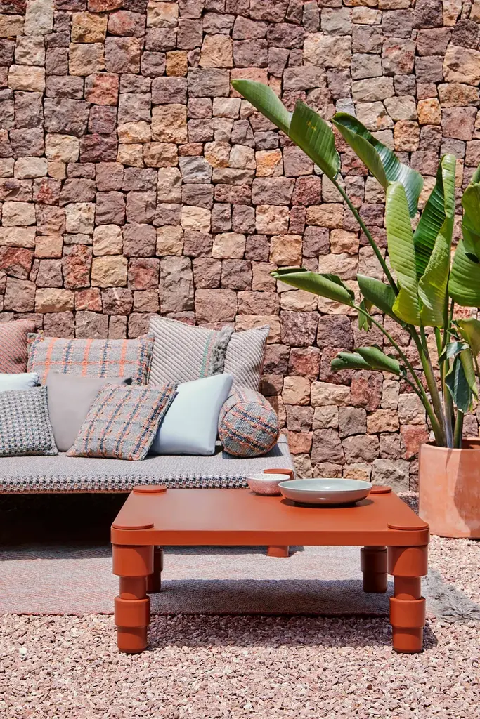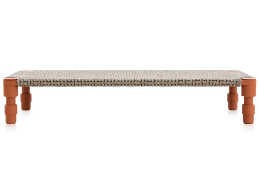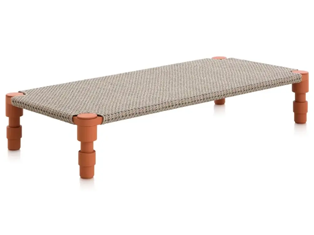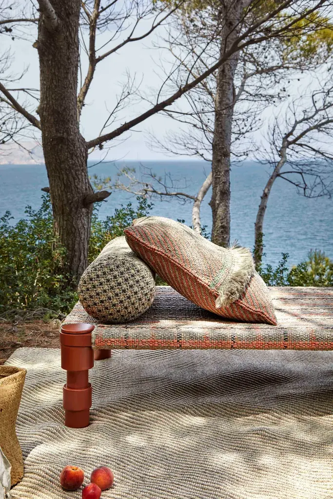 The beds have a powder-coated aluminium frame and are available in three colour combinations: Terracotta frame with Gofre terracotta or Tartan terracotta cover, Grey frame with Gofre blue or Tartan blue cover or Green frame with Gofre green or Tartan green cover.GARDEN LAYERS, GAN’S FIRST OUTDOOR SPACE design by PATRICIA URQUIOLA for GAN.There exist artists who know no boundaries and there are journeys that changeeverything.Patricia Urquiola travelled to India where she was captivated by the delicacy and harmony of the Mongol architecture she found there. Gardens, terraces and miniatures found their way into her restless imagination inspiring a new collection which from the very first spark of creativity she wanted to be for the outdoors.Hand in hand together with her GAN sets its sights on new horizons.GARDEN LAYERS, the first outdoor adventure under the framework of the GAN Spaces series is a collection made up of rugs, mats, roll pillows and cushions that can be arranged in different ways together, with infinite possibilities for outdoor living.The influence of the Orient in GARDEN LAYERS is evident in terms of the way it invites reclined relaxation on rugs and mats, supported on roll pillows and stuffed cushions. It can also be perceived in the fringes, the finishes and the geometry of its motifs.Urquiola once again showcases her masterly design skills. Her creativity in interpretingother worlds and transporting us to them through her exquisite language.The collection is available in three colour groups: terracotta, grey ad blue. Its inspireddesign is combined with high-tech materials and fillings: weather resistant yarns and foams that dry rapidly (dryfast) in order to provide the perfect outdoor behaviour.