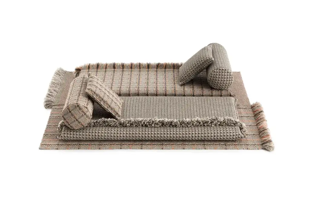 GARDEN LAYERS, GAN’S FIRST OUTDOOR SPACE design by PATRICIA URQUIOLA for GAN.There exist artists who know no boundaries and there are journeys that changeeverything.Patricia Urquiola travelled to India where she was captivated by the delicacy and harmony of the Mongol architecture she found there. Gardens, terraces and miniatures found their way into her restless imagination inspiring a new collection which from the very first spark of creativity she wanted to be for the outdoors.Hand in hand together with her GAN sets its sights on new horizons.GARDEN LAYERS, the first outdoor adventure under the framework of the GAN Spaces series is a collection made up of rugs, mats, roll pillows and cushions that can be arranged in different ways together, with infinite possibilities for outdoor living.The influence of the Orient in GARDEN LAYERS is evident in terms of the way it invites reclined relaxation on rugs and mats, supported on roll pillows and stuffed cushions. It can also be perceived in the fringes, the finishes and the geometry of its motifs.Urquiola once again showcases her masterly design skills. Her creativity in interpretingother worlds and transporting us to them through her exquisite language.The collection is available in three colour groups: terracotta, grey ad blue. Its inspireddesign is combined with high-tech materials and fillings: weather resistant yarns and foams that dry rapidly (dryfast) in order to provide the perfect outdoor behaviour.