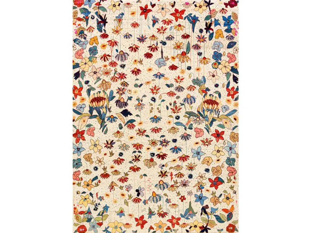 Garden of Eden 12 is a rectangular wool rug with floral pattern.Zollanvari Super Fine Gabbeh.The Garden of Eden is the paradise where Adam and Eve lived, and the word paradise, which has Greek and Persian roots and originally meant a hunting-park or royal garden, is frequently associated with the garden. In Genesis, the garden is described as having temperate weather with no rain, lush flora and gushing rivers. Here's our interpretation of the Garden of Eden or Paradise... lush, vivid, exquisite, flawless, fantastical. How else could have one depicted the 'unknown'? Designing this Gabbeh we hoped to make sense of the saying: 'died and gone to heaven'.