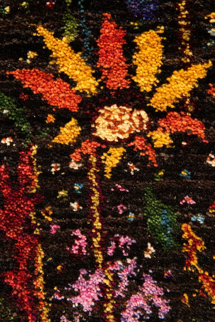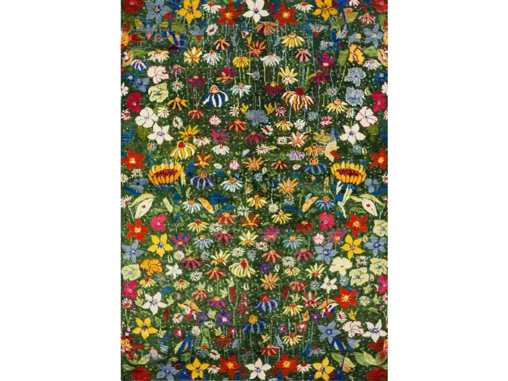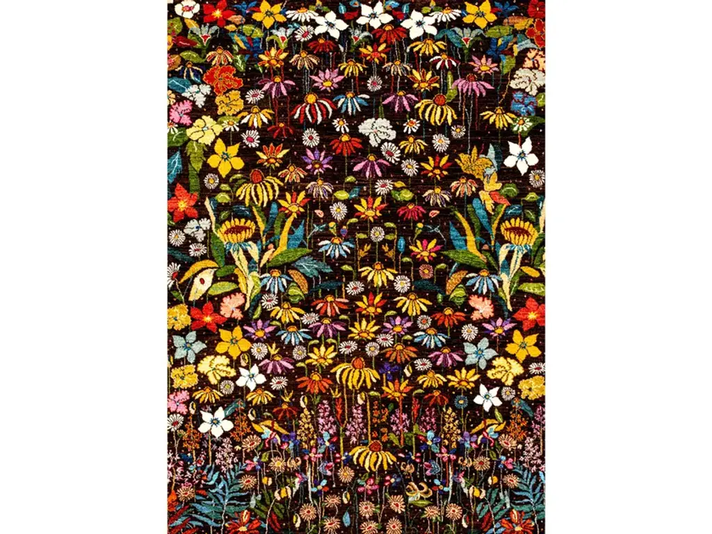 Garden of Eden 8 is a rectangular wool rug with floral pattern.Zollanvari Super Fine Gabbeh.The Garden of Eden is the paradise where Adam and Eve lived, and the word paradise, which has Greek and Persian roots and originally meant a hunting-park or royal garden, is frequently associated with the garden. In Genesis, the garden is described as having temperate weather with no rain, lush flora and gushing rivers. Here's our interpretation of the Garden of Eden or Paradise... lush, vivid, exquisite, flawless, fantastical. How else could have one depicted the 'unknown'? Designing this Gabbeh we hoped to make sense of the saying: 'died and gone to heaven'.