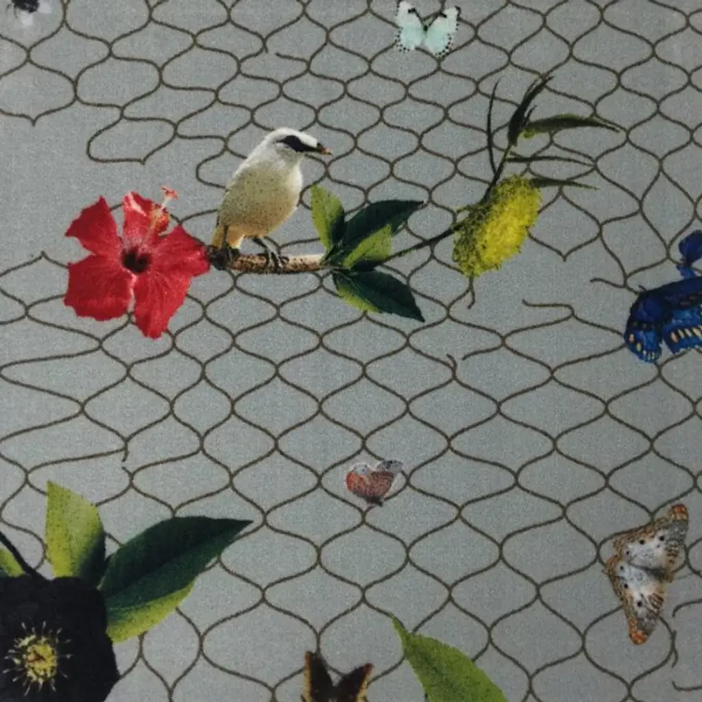 Inspired by the biblical paradise, Moooi's Garden of Eden Round Rug is a contemporary and beautiful take on the Eden setting. Festooned with brightly colored birds and lively-looking plants, the rug's main features are accented by a netted background that prods the back of the mind into a memory of snake skin. This rug is available in two colors and comes in either a durable tufted polyamide or a more luxurious wool blend.