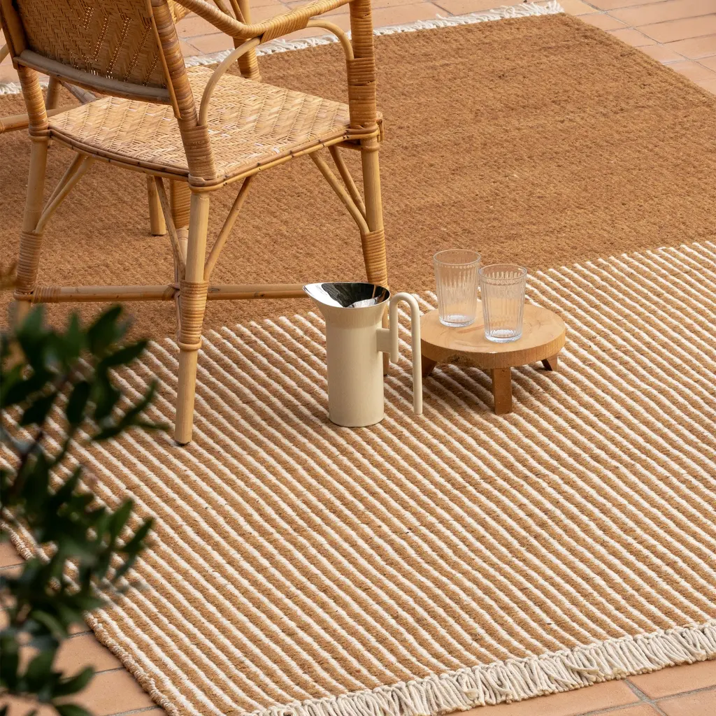 Indulge in luxury and sustainability with the Garden Outdoor Rug from Nanimarquina. Made from recycled PET and coconut fiber, this rug exemplifies a perfect blend of style and functionality for your outdoor space. Unlike traditional outdoor rugs, this exclusive piece has been specifically designed to add a touch of warmth and character to your environment. Highlights