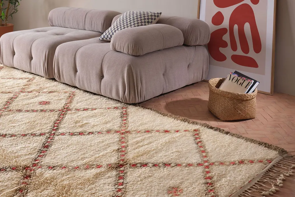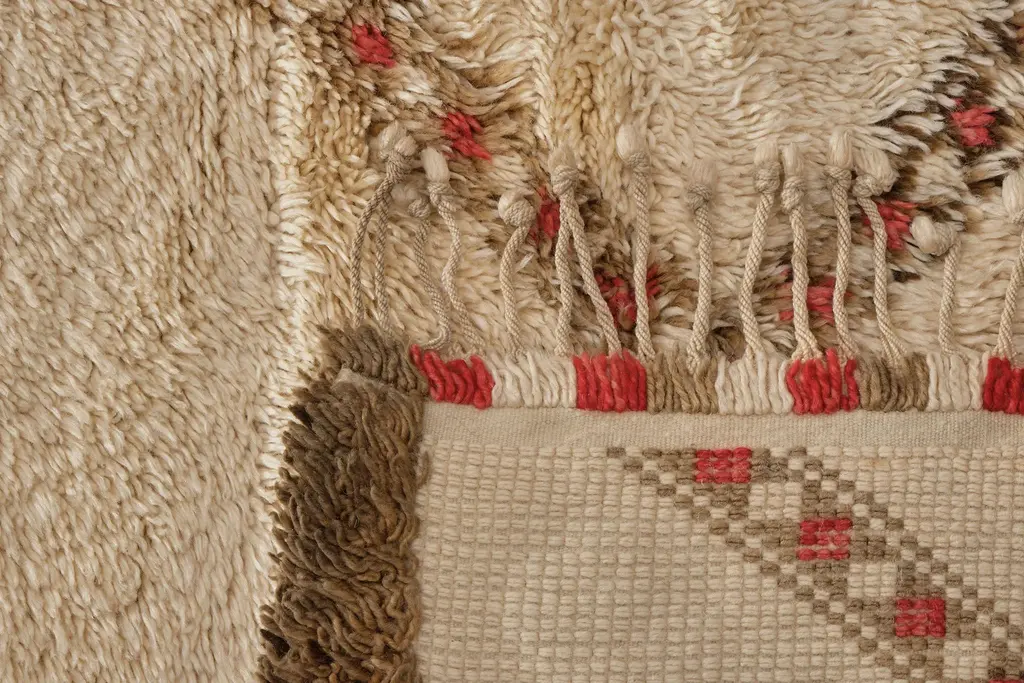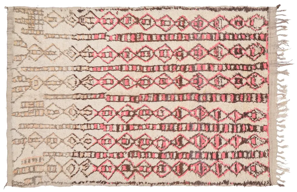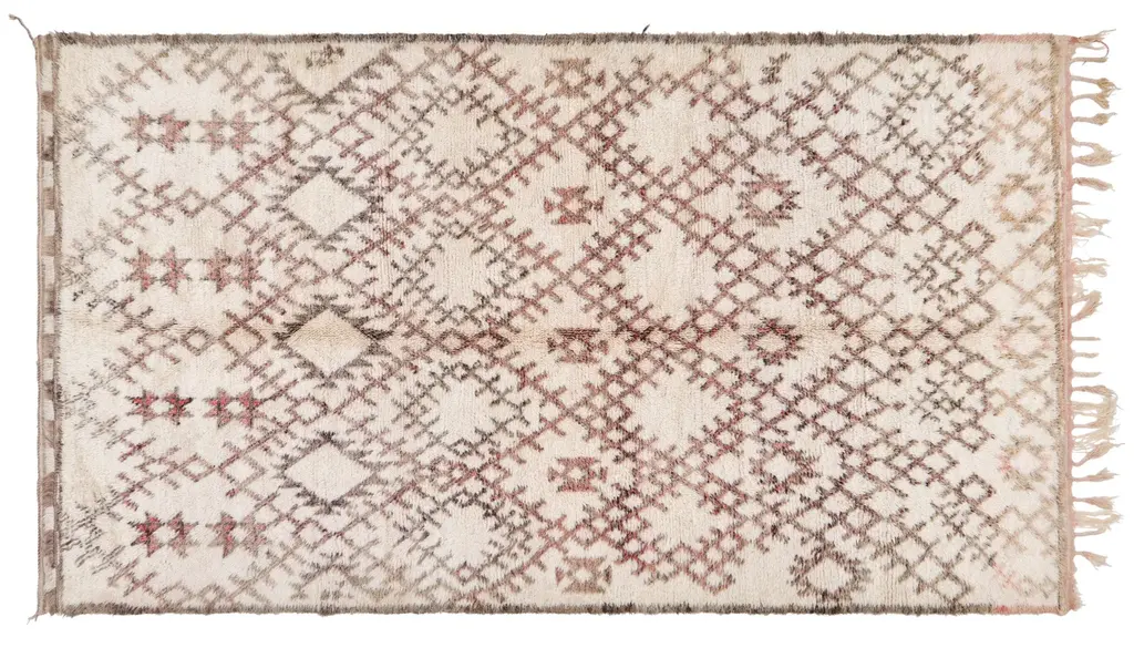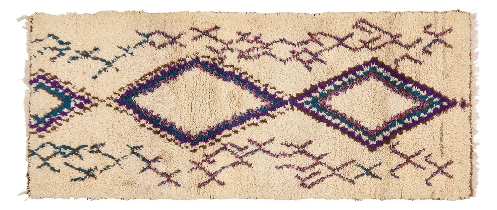 Our Moroccan pieces are each one-of-a-kind. Much of our collection was woven between 30 and 100 years ago, and curated by us. Other rugs in our collection are fresh off the loom and made with traditional techniques. Moroccan rugs don’t come with a key. As with any painting or poem, their motifs have many subjective interpretations. Originally made for personal use, these rugs took months to weave, documenting a shifting tide of events and emotions in the weaver’s life.