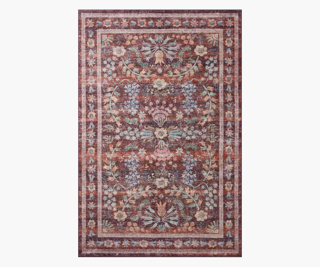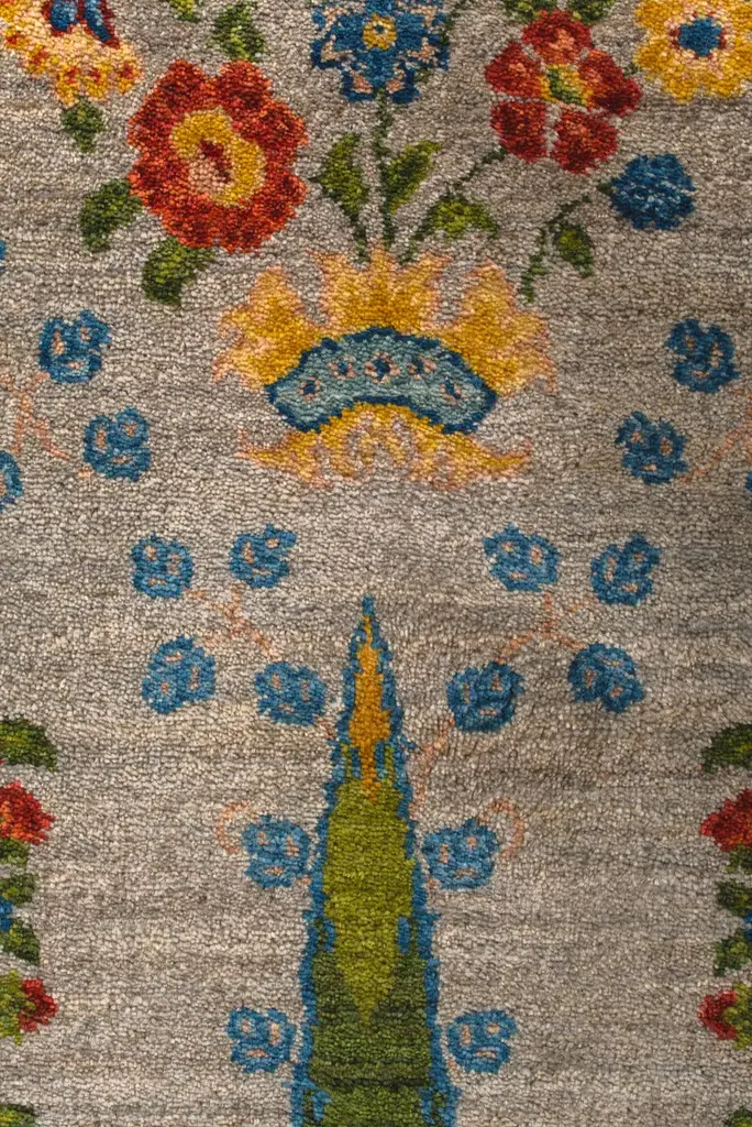 Garlands & Cypresses 2 is a rectangular wool rug with floral pattern.Garlands & Cypresses is a formal dance of love linking East and West: multi-coloured cypress trees and ornate floral sprays - Persian suzanis meet High Victorian embroideries - a contemporary design with the elegance of a waltz.