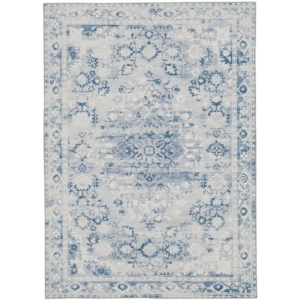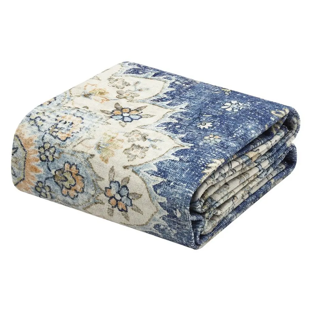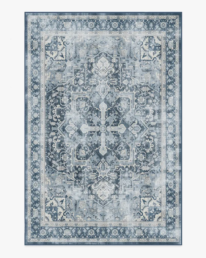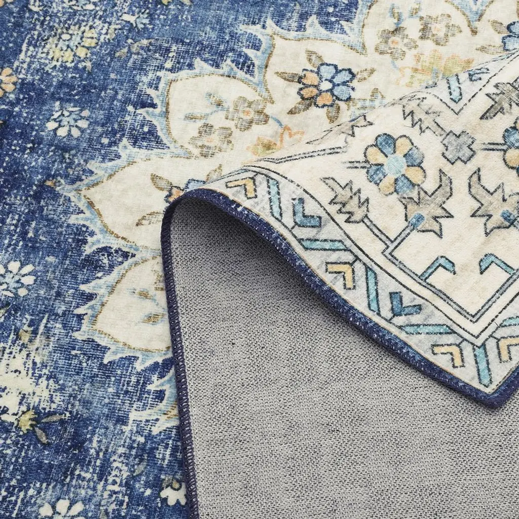 Garvee 8X10' Boho Traditional Washable Area Rug, Foldable Non-shedding Floor Mat, Blue