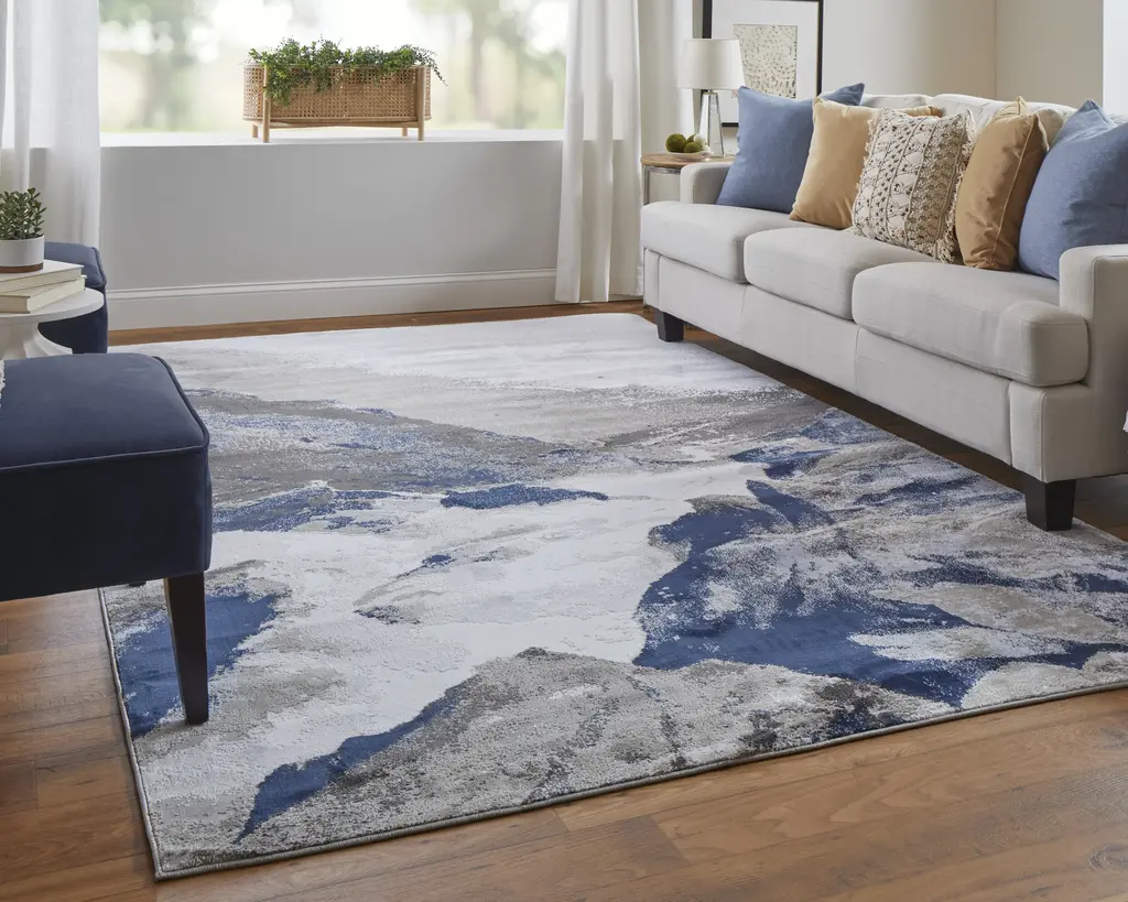 Gaspar Modern Abstract - Blue/gray/white Area Rug - 1'8" X 2'10" Rectangle