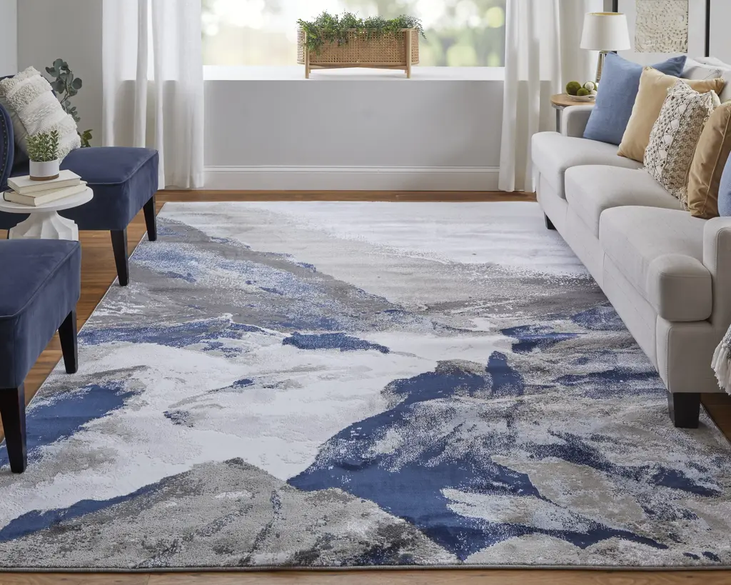 Gaspar Modern Abstract - Blue/gray/white Area Rug - 6'7" X 9'6" Rectangle