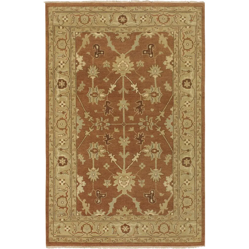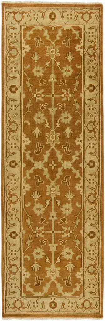 Collection: Gatzke Colors: Camel, Dark Brown, Off White, Tan Construction: Hand Knotted Material: 100% NZ Wool Pile: Low Pile Pile Height: 0.2" Styles: Traditional Made In: India Thickness: 0.4" Price Range: $$$$$ (Premium)