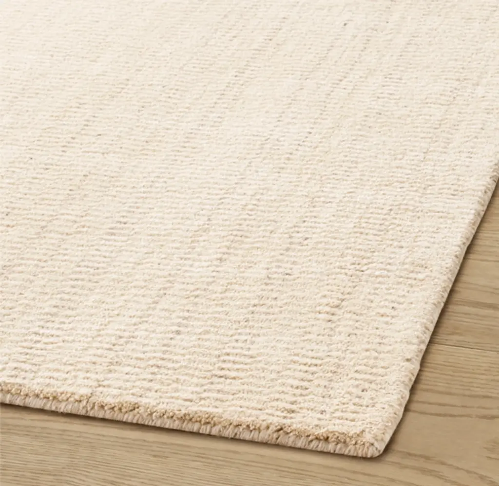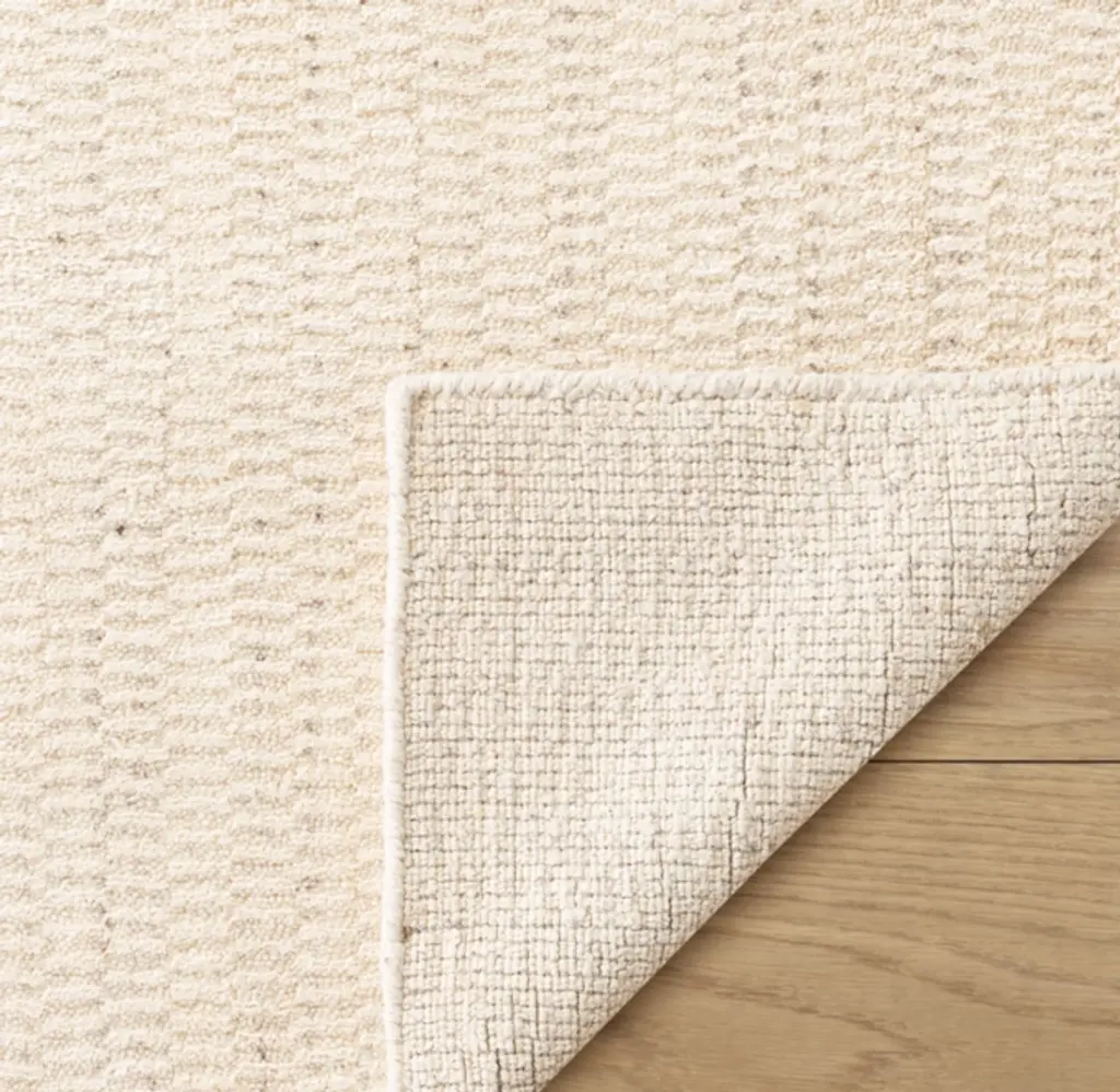 A blend of New Zealand wool and natural linen yarns lend organic character to Gaya's soft pile. Hand shearing reveals delicate texture and a subtle basketweave pattern that emerges from the rug's smooth finish.