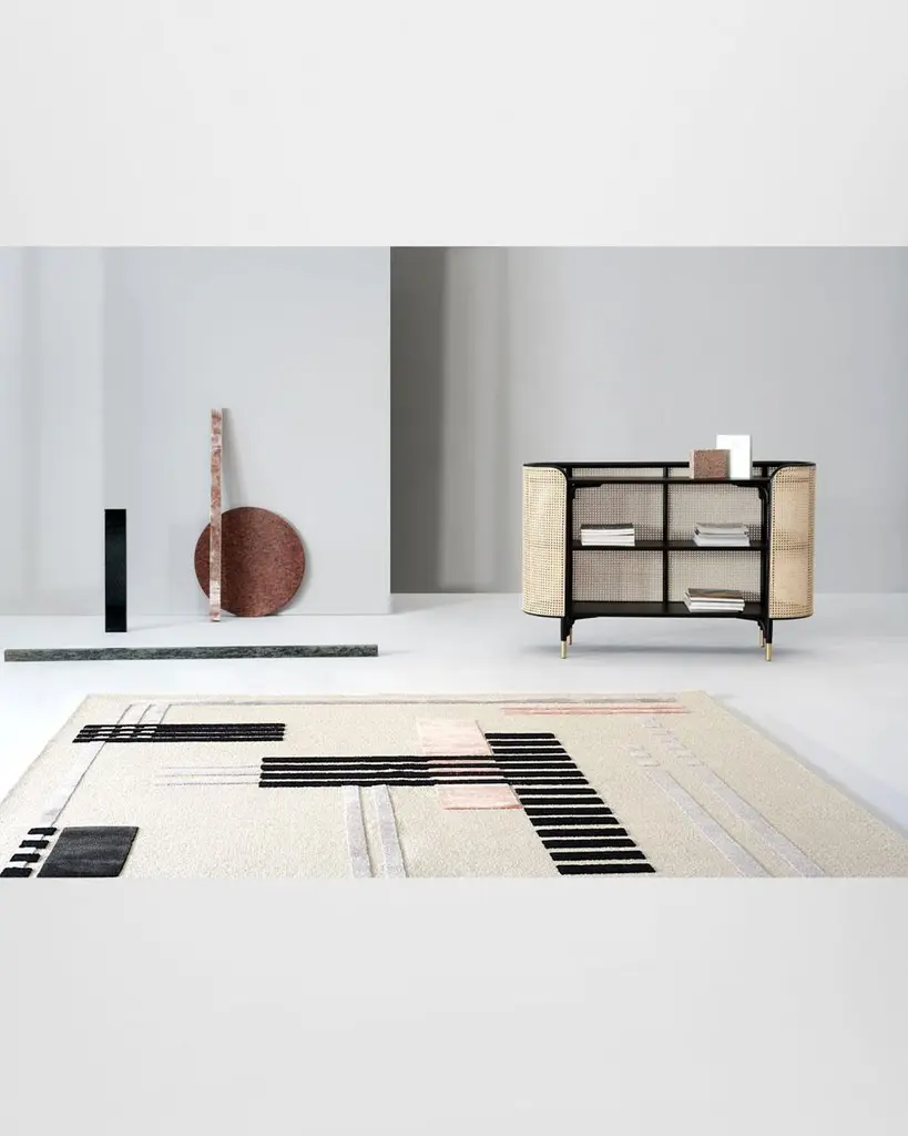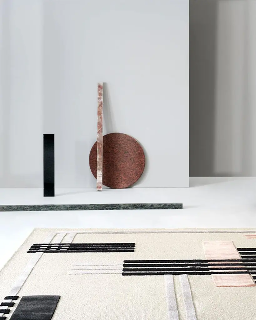 The GTV catalogue is enriched with new home accessories with the AROUND COLORS RUGS COLLECTION carpets designed by Paola Pastorini, a stylist who has been working with the company for several years, handcrafted by CC Tapis. Originating from a careful study of elementary geometric shapes and their juxtaposition, it is freely inspired by early 20th century influences. A chromatic choice capable of softening the rigour of the geometric design, creating a décor that harmoniously delineates the spaces. There are four models designed for GTV, two rectangular, one square and one oval. Each model takes its name from the predominant colour present in the geometry of the carpet, therefore YELLOW, BROWN, PINK and GREY. The carpets are made of wool and silk and are hand-knotted.