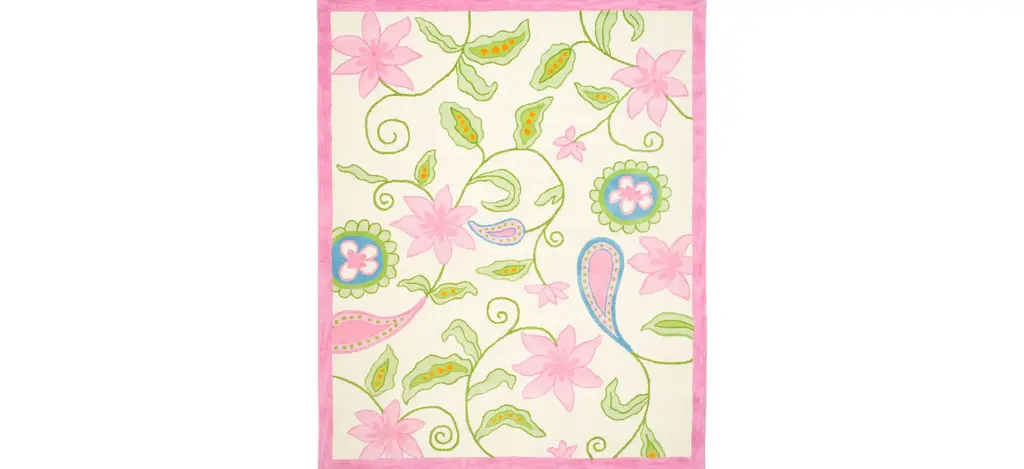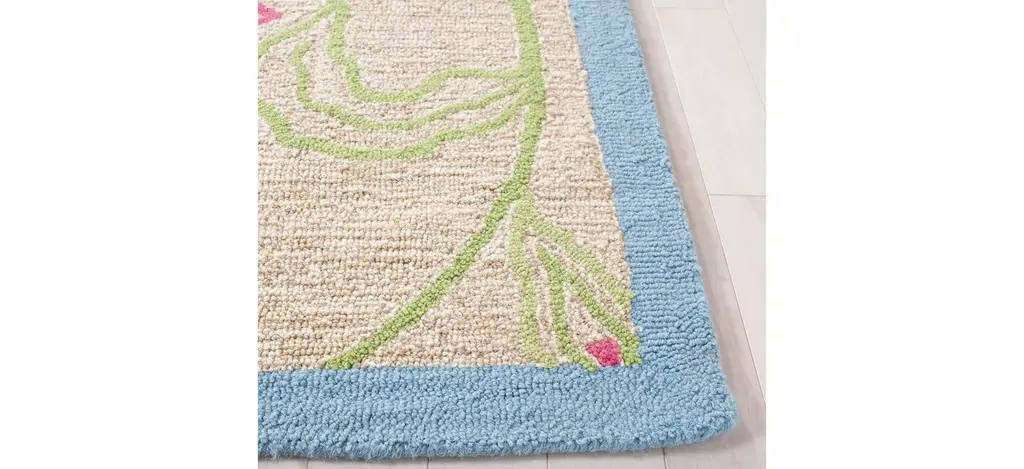 The Geirdis Kid's Rug features a colorful design with beautiful flowers for a fun addition to your kid's room. These rugs are made with pure soft wool and hand-tufted to a cotton backing for added cushion.