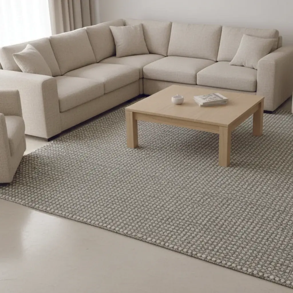 The Gem Custom Carpet offers a versatile and durable flooring solution designed to fit specific spatial requirements. This custom-sized carpet combines quality materials with a distinctive texture, suitable for various interior settings. Crafted from a blend of wool and polyester, this carpet provides both softness and resilience. Wool offers natural durability and a plush feel, while polyester enhances stain resistance and wear. It features a cut-and-loop pile construction, creating a varied surface texture that adds visual interest and depth. The pattern repeat is random, contributing to its organic appearance. While primarily designated as 'Blue', the Gem Custom Carpet showcases a multi-tonal palette. The design incorporates light blue, cream, and subtle grey flecks, creating a sophisticated, blended aesthetic. This varied coloration helps conceal minor imperfections and adds visual warmth without dominating the room. Designed for precision, the Gem Custom Carpet is available in a wide range of custom dimensions. Sizes can be specified from a compact 2 feet by 5 feet up to a grand 13 feet by 30 feet, ensuring a perfect fit for unique spaces, hallways, or expansive living areas. This custom carpet is produced in India, leveraging traditional craftsmanship combined with modern manufacturing techniques to ensure a high-quality product. The Gem Custom Carpet is a practical choice for residential or light commercial use, offering durability for high-traffic areas and a comfortable surface underfoot. Its neutral yet engaging color scheme and custom sizing make it an adaptable foundation for diverse decor styles.