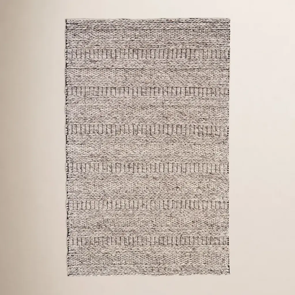 Handwoven of soft, durable wool with a chunky weave, this rug features an impressively textured design in versatile neutral hues. We recommend a rug pad to extend the life of your rug and keep it securely in place.