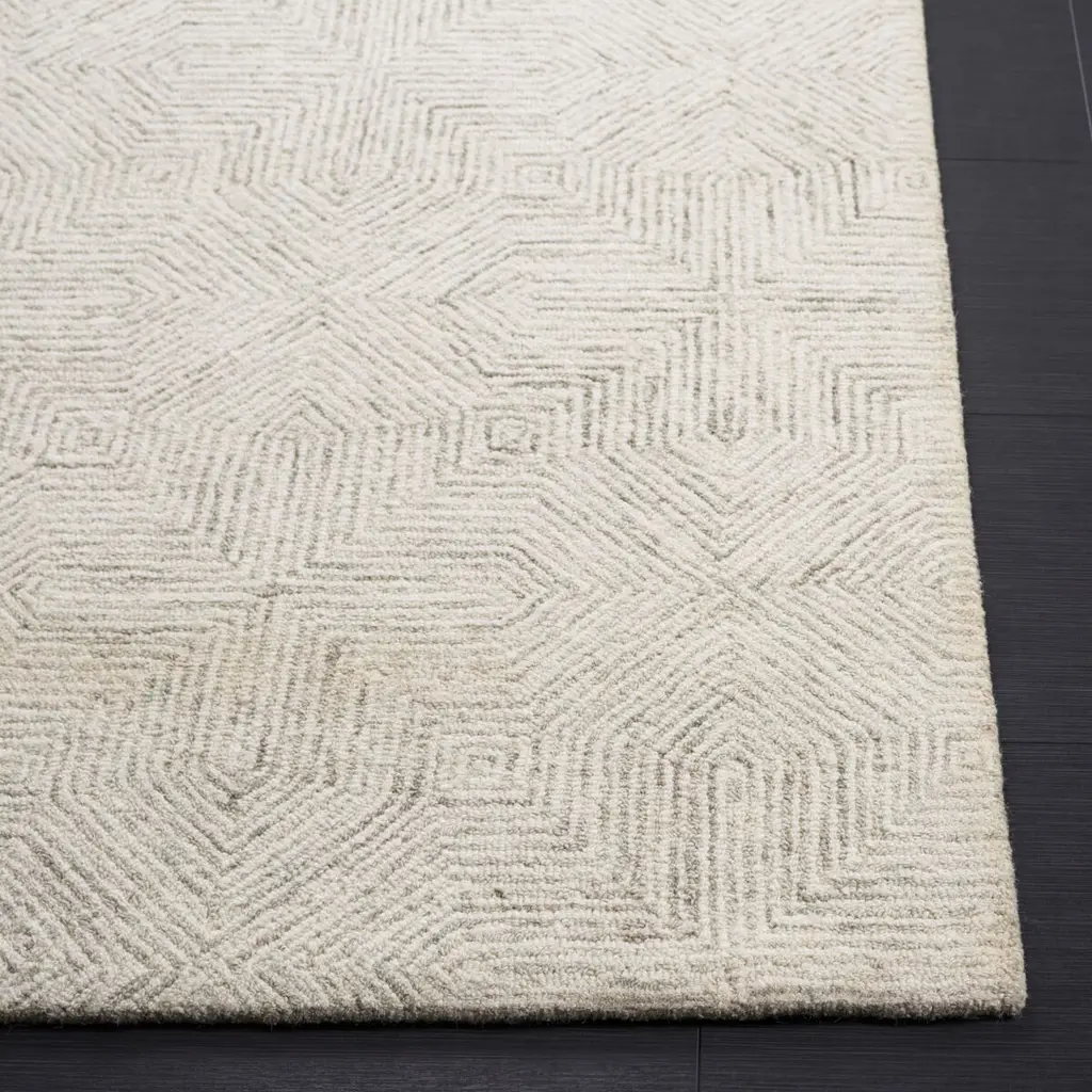 Elevate your space with the sophistication of this 5' X 8' medium rectangle area rug, showcasing a harmonious blend of blue and ivory hues. Constructed using the hand-tufted method, this rug boasts a pile height of 1/4", providing a plush feel underfoot. The meticulously crafted 80% wool and 20% cotton composition ensures lasting durability and a touch of luxury. Originating from the skilled artisans of India, each rug radiates a timeless charm that complements any decor style. Featuring a captivating geometric pattern, this rug brings an eye-catching focal point to your room, seamlessly integrating with both modern and traditional settings. While the rug is not washable, proper care and spot cleaning can preserve its allure. Please note that a non-slip pad is recommended as this exquisite piece is not slip-resistant. Imbue your home with this beautiful, culturally-rich centerpiece that promises to be a conversation starter in any living space.