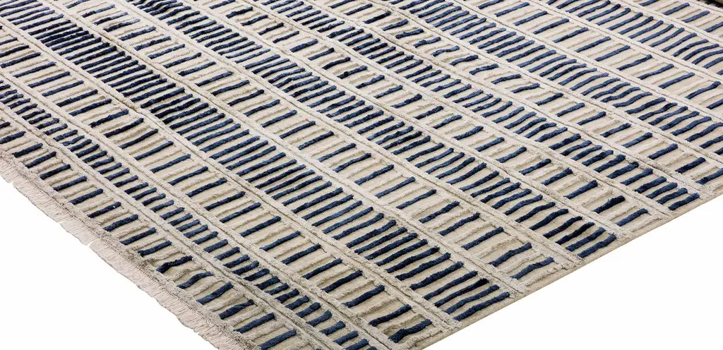 Carpet fragments have been found in Egyptian tombs and in Mesopotamia, the cradle of civilization, so we know that beautiful rugs were treasured millennia ago – just like they are today. In our Geo Traverse rug, you'll see obvious design influences from traditional Gabbeh Persian rugs. Geo starts with a 100% wool khaki-colored ground, flat-woven in soumak rug style. Artisans whose families have passed down traditional rug-making techniques for generations weave in lyocell, a remarkably lustrous fiber extracted from wood pulp that's softer than silk, cooler than linen, eco-friendly, and wonderfully strong. They tie each knot by hand and cut down the looped pile for a clean, modern effect. The result is textured and rhythmic with highs and lows, light and dark, softness and substance.