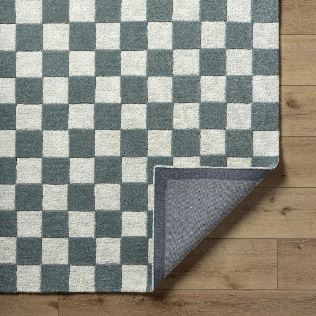 Geoffrey Transitional Checkered Wool Area Rug - 5' X 7' 6" - Sage Green